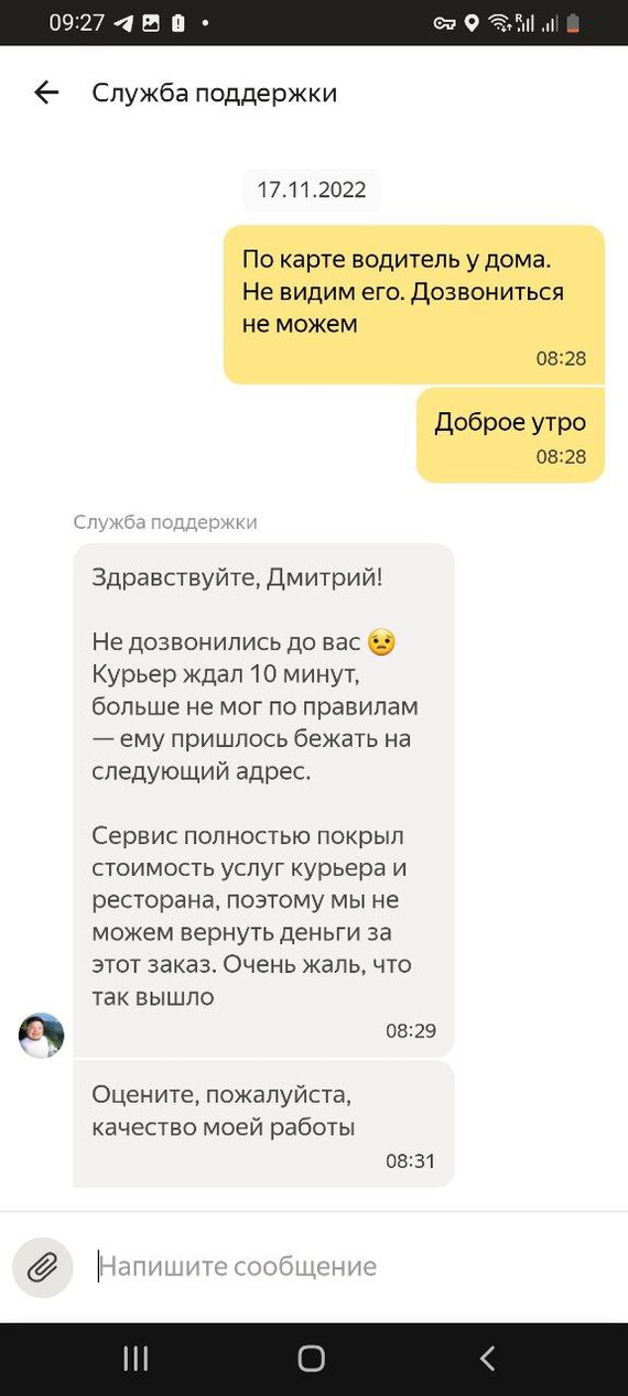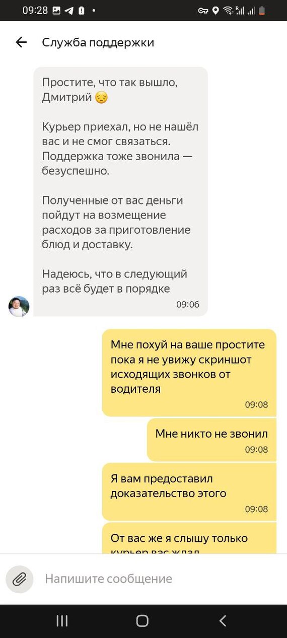 Коротко о службе поддержки яндекс еды :)