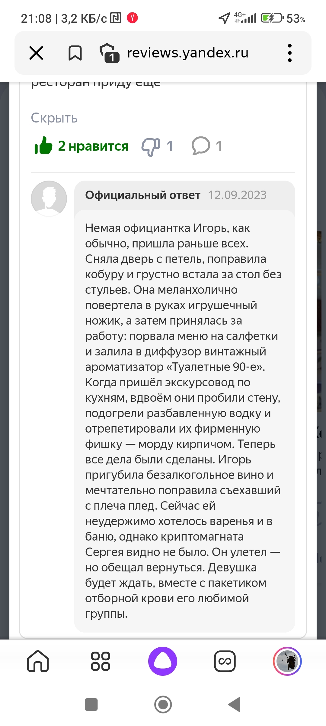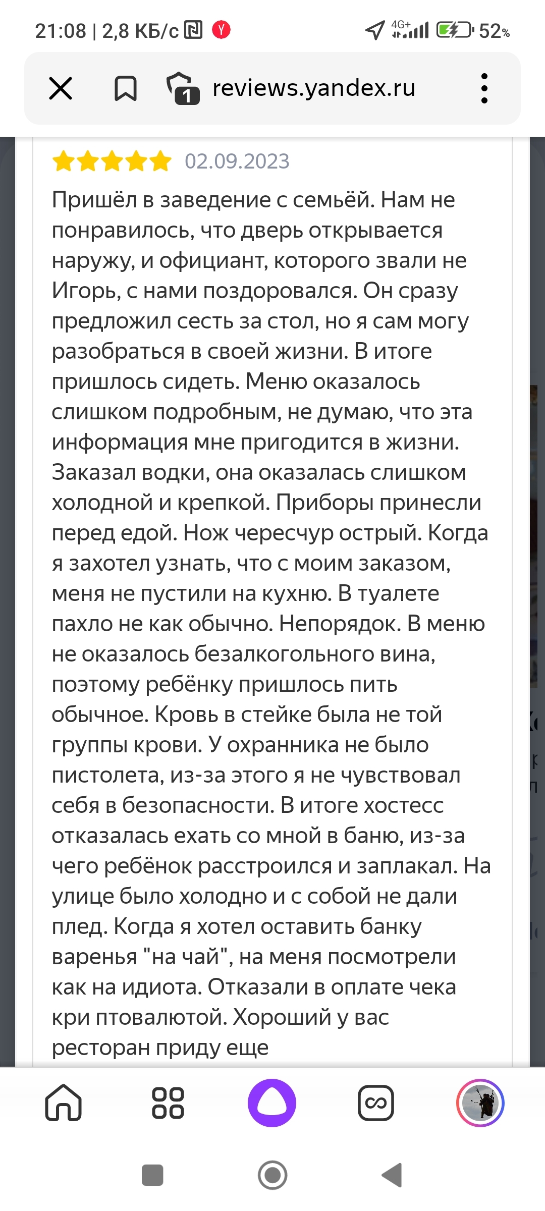 Решил подшутить, и оставил мемный отзыв в яндекс навигаторе, к одному ресторанчику.