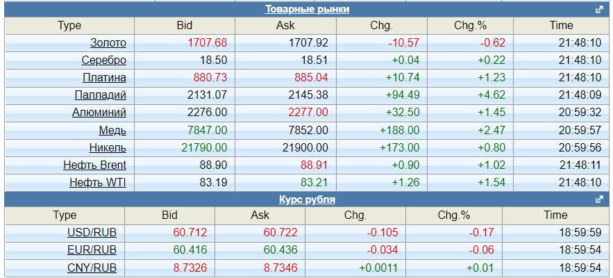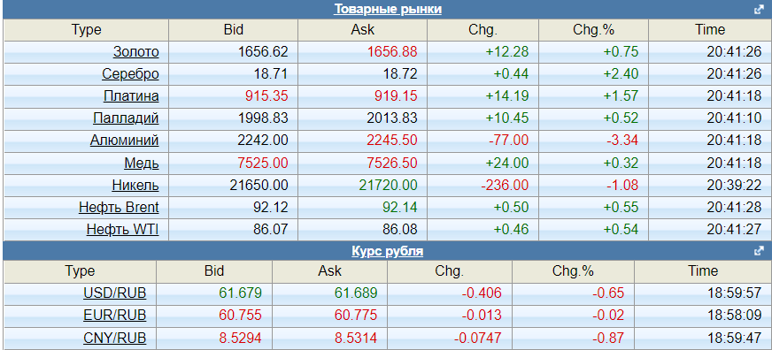 Товарная и валютная биржа: Всё хорошо. Рубль в середине коридора, золото подрастает, серебро тоже. Нефть на комфортном уровне, Urals - 70,2. Газ ТТФ - 1252.