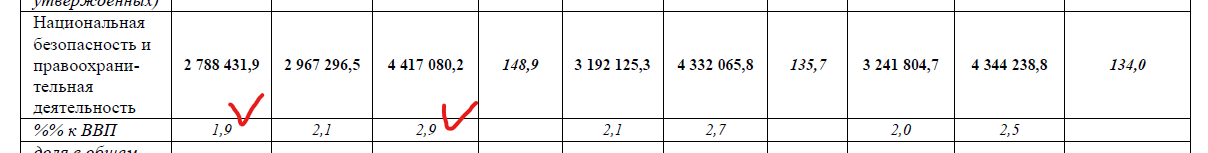 А вот сравнение по статье расходов "Национальная безопасность" проводится с фактическими расходами 2022 года (их оценкой), так как разница получается больше, усиливается психологический эффект