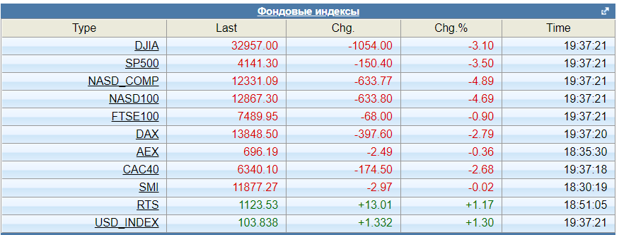 3. Мировые рынки демонстрируют признаки глобального финансового кризиса. Пока - только признаки. Но "кризисную настороженность" проявляем, и начинаем следить за мировыми индексами. Сразу скажу, что на находящейся в изоляции от финансовой системы "цивилизованного мира" России этот кризис мало чем угрожает. Разве что снизятся цены на нефть.