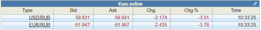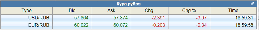 На рынке Форекс также реакция на новость не прослеживается. Текущее значение курса рубля: 58,325. Чуть ниже, чем закрытие ММВБ.