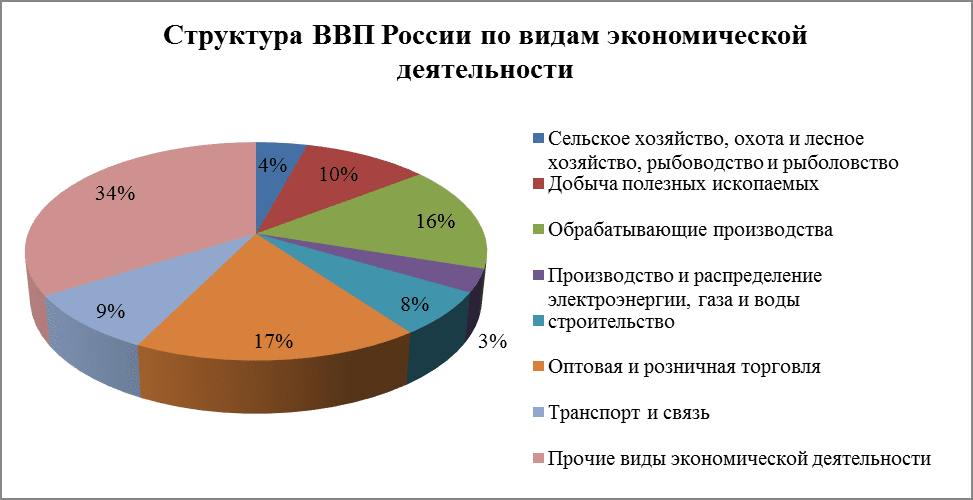 В настоящее время Россия (по крайней мере по состоянию на 1 мая текущего года), несмотря на значительные успехи в развитии как индустриальных, так и постиндустриальных аспектов, придерживается сырьевой парадигмы развития. Это подтверждается не только структурой внутреннего валового продукта ВВП (ВВП - это совокупность всех товаров, услуги финансовых операций страны), но и образом действий российской власти. При всём внимании к прочим отраслям, наибольшее благоприятствование обеспечено именно сырьевому сектору.