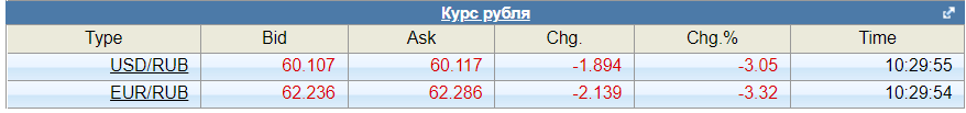 2. Курс доллара к рублю, несмотря на драконовскую учетную ставку, упал до 60 рублей;