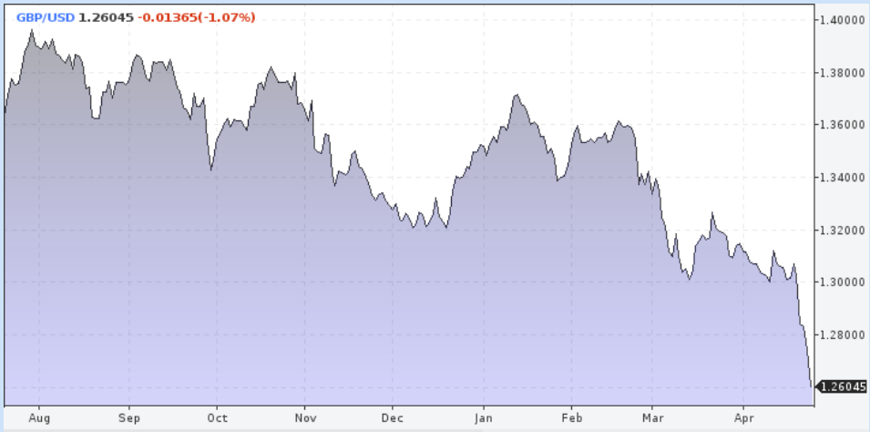 А вот "твердые, свободно конвертируемые" валюты "цивилизованных" стран отправились в крутое пике. Не пожалею места в посте, покажу картинки. Графики - с августа по апрель: