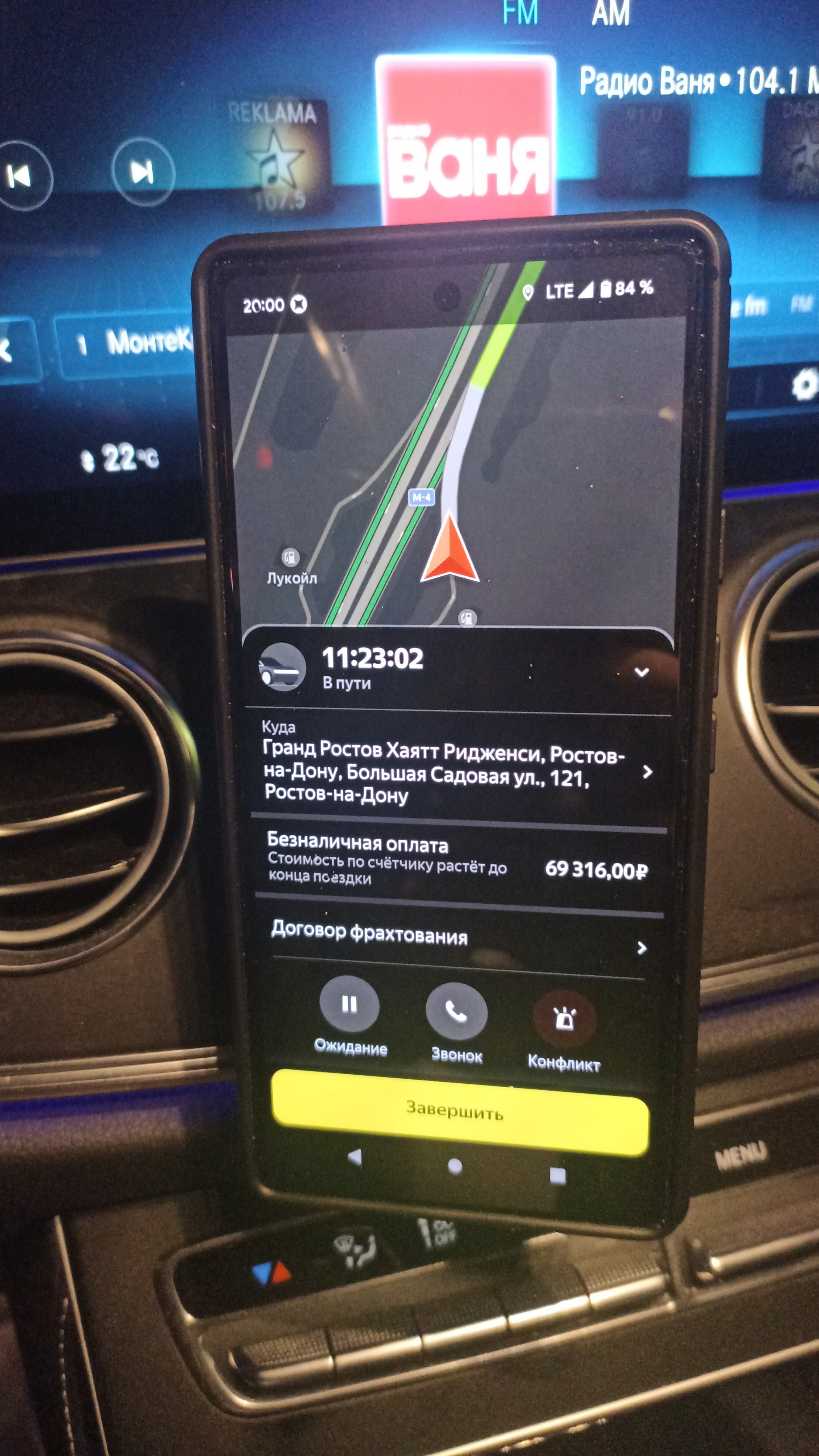 Что бы снять вопросы, почему площадь трёх вокзалов. Когда я приехал за клиентом, я уточнил: мы едем в Ростов на Дону? Ответ да....нельзя в такой ситуации не поинтересоваться, причина? Клиент ответил, опоздал на поезд, проспал, а самолётами не летает. Он попросил заехать на казанский вокзал, что бы сдать билет. Так как заказ шел по счетчику, смысла добовлять точку не было. Мы доехали, где я его оставил, и отъехал, где можно стоять, при этом мы обменялись телефонами, что бы созвониться. После казанского вокзала мы уехали в путь. У меня единственная фотография, когда с другом списывались, где я
