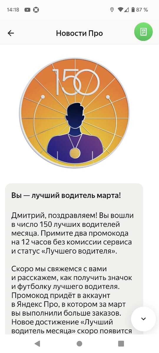 Потому что я один из лучших водителей марта по всей России, потому что каждую неделю практически я топ 1% по заработку.