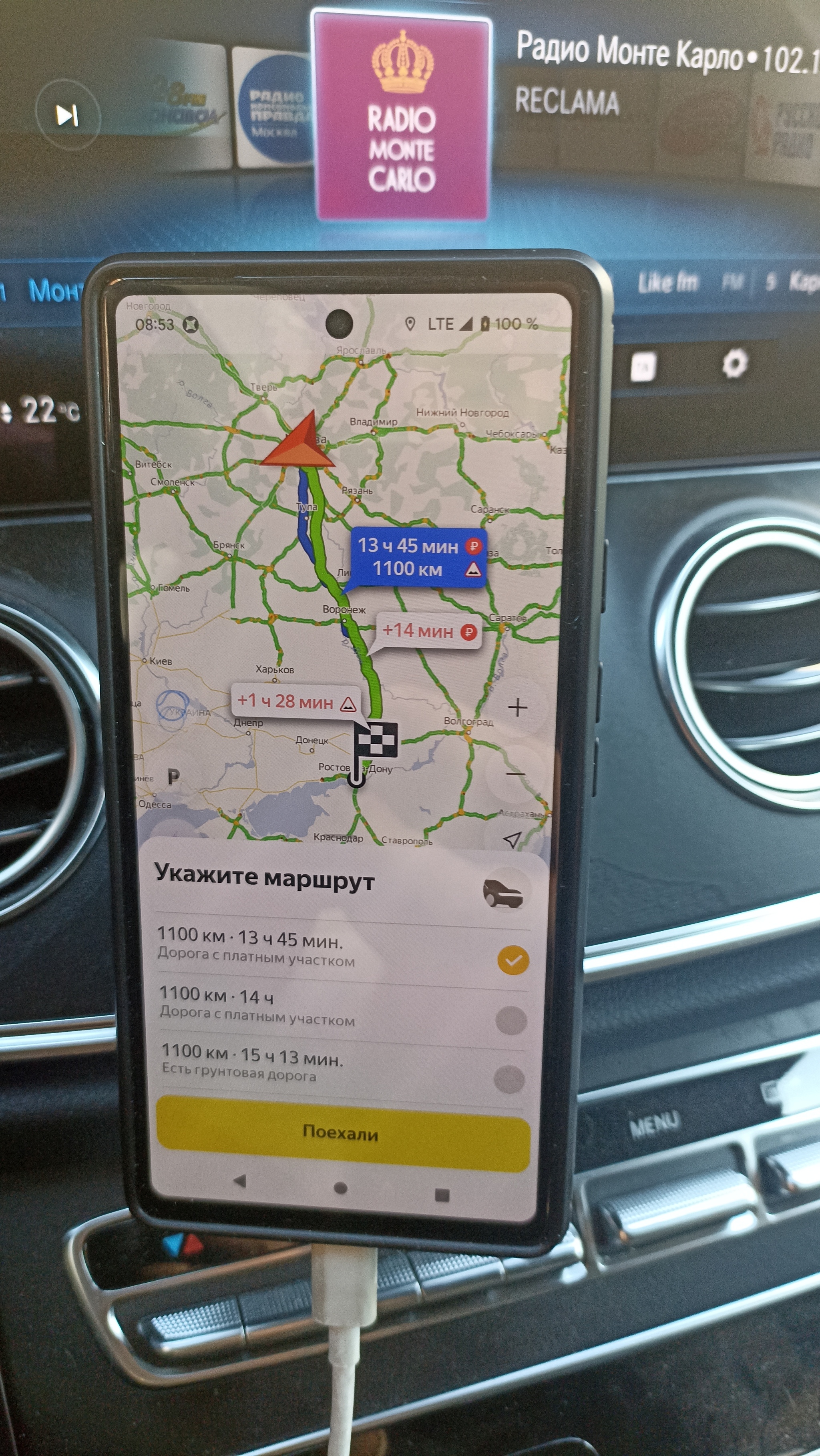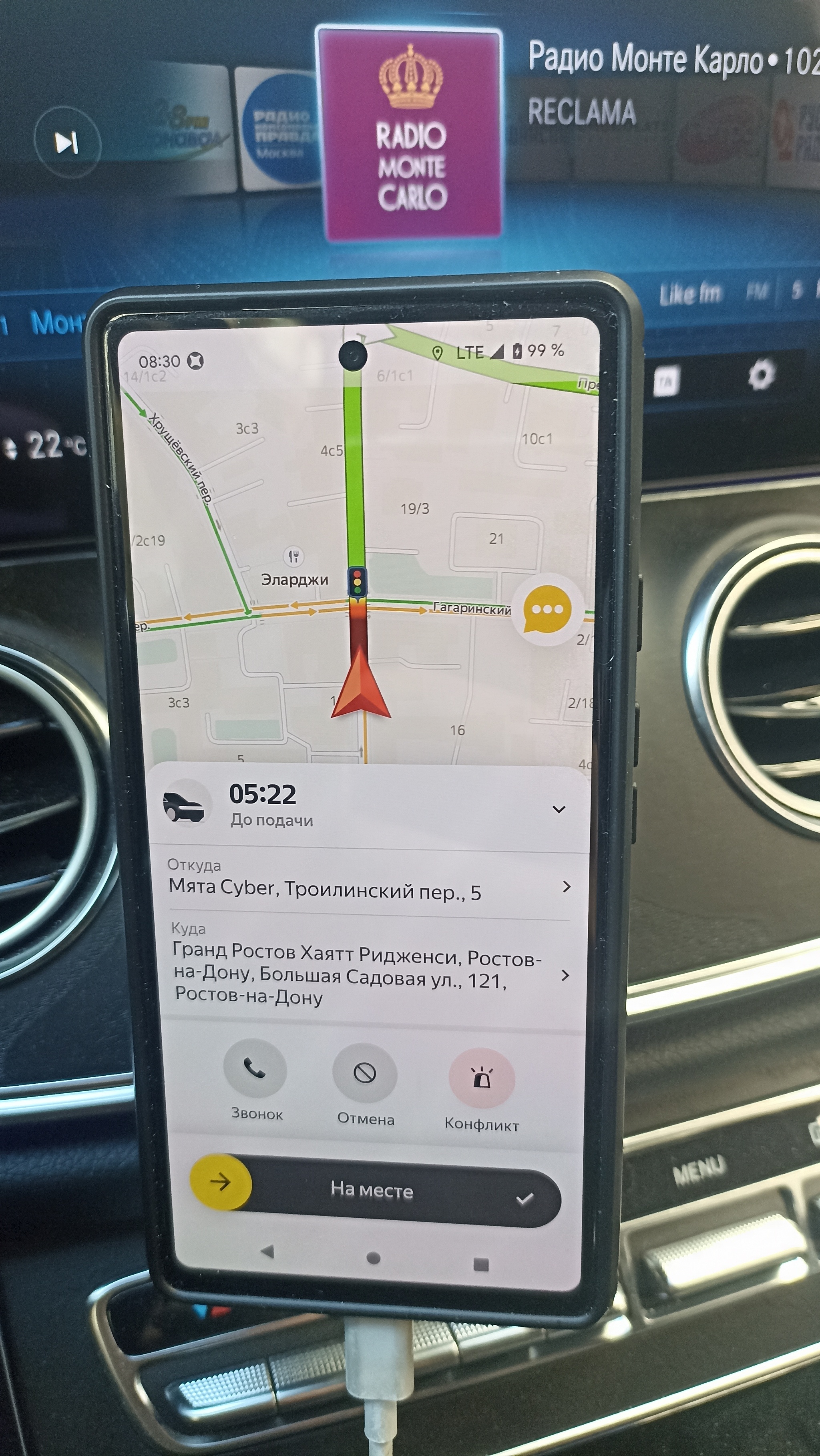 Это после 11 часов пути практически, можно посмотреть по времени на мобильном телефоне: в 8-30 я принял заказ