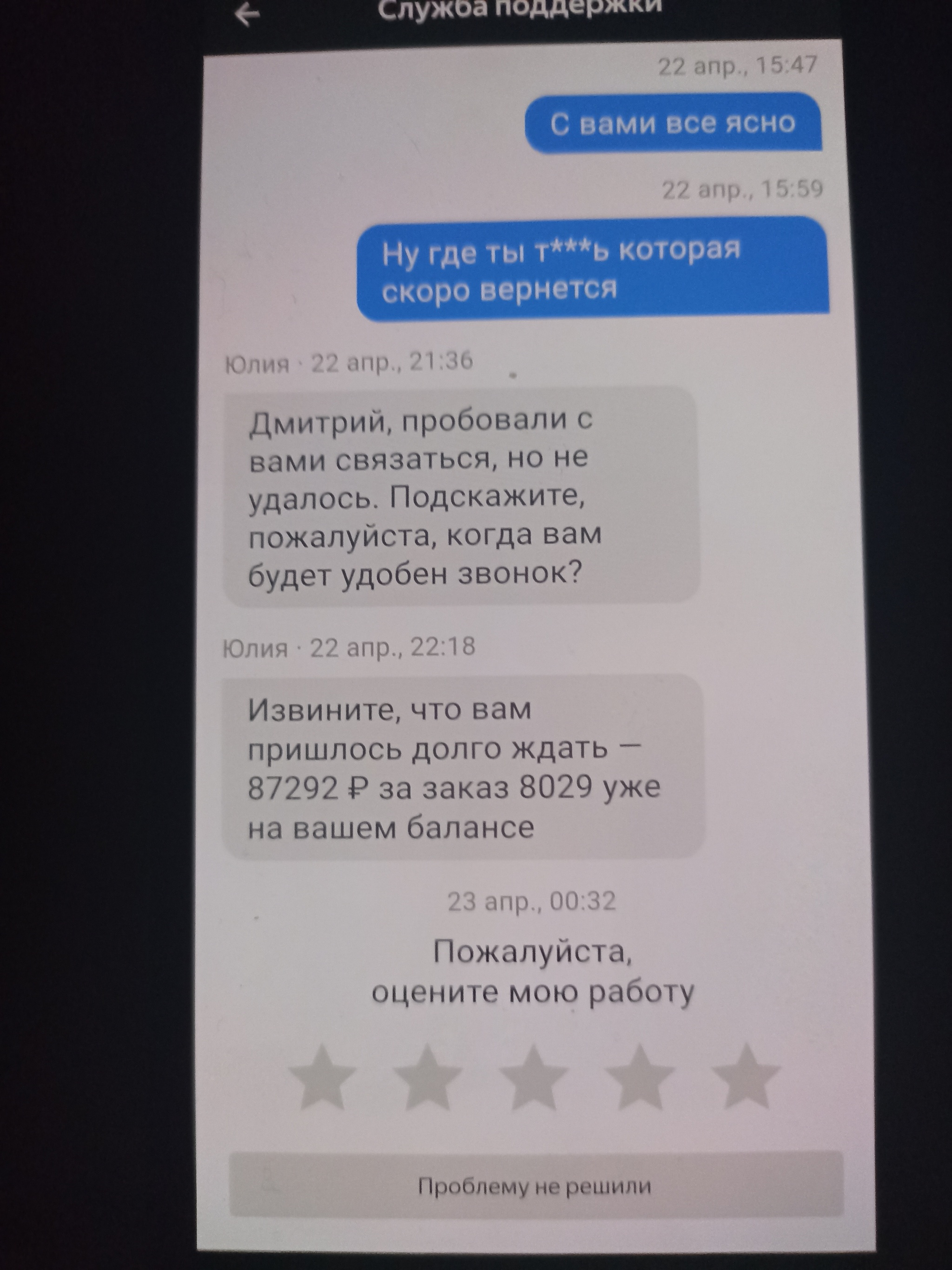 Сняли 1580р, написал в поддержку