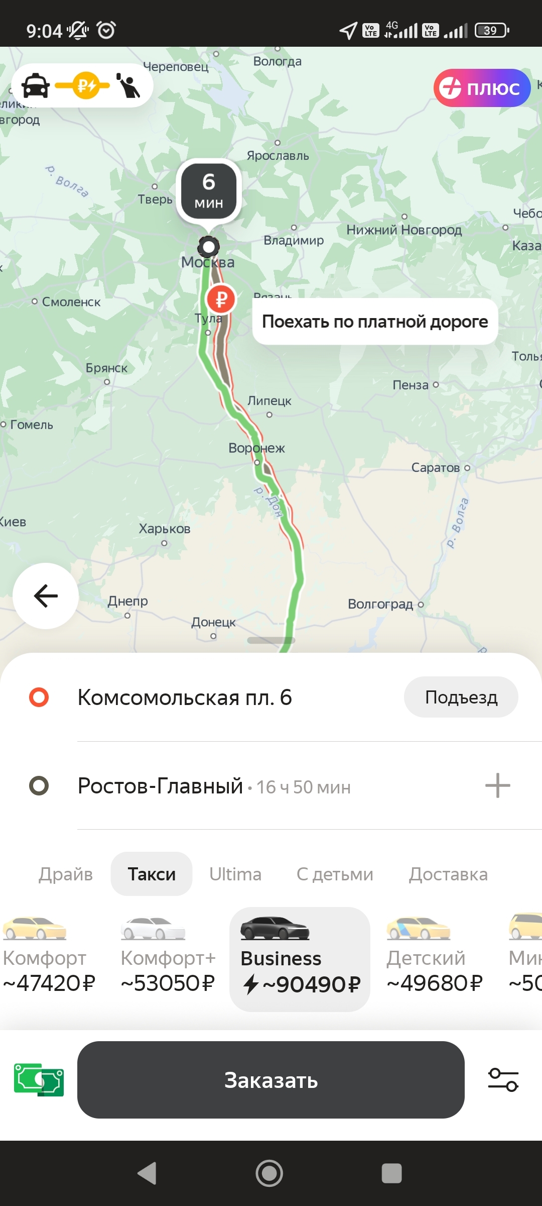 У нас в городе нет тарифа бизнес класс, есть только комфорт и комфорт плюс.