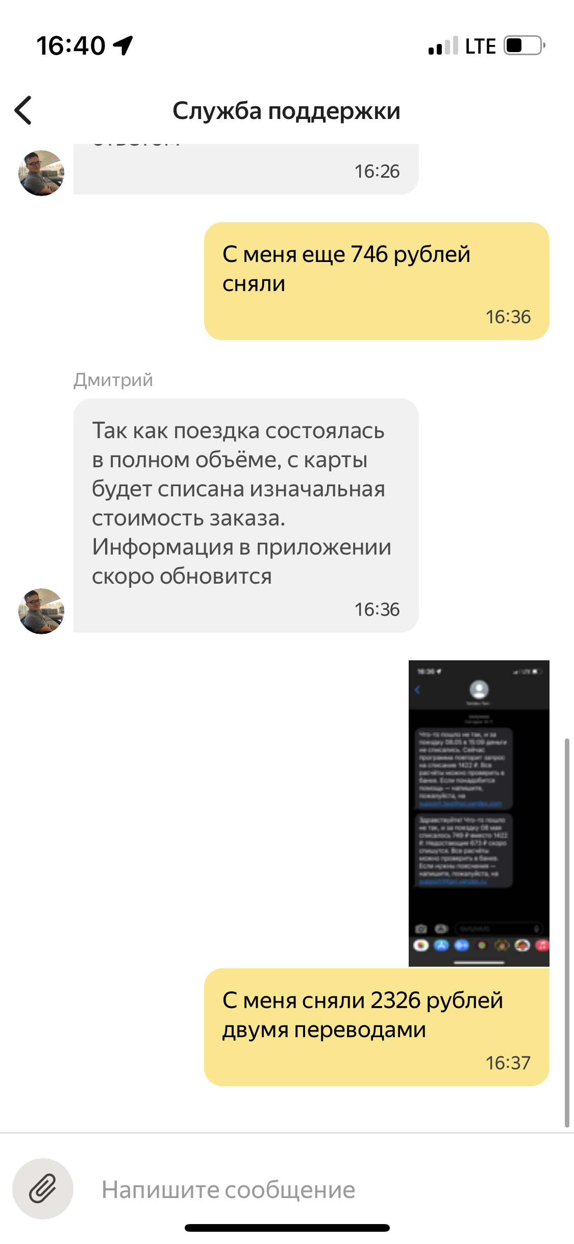 После этого с меня сняли еще 746р и изменили стоимость поездки на 1579. Однако в сумме сняли 2326.