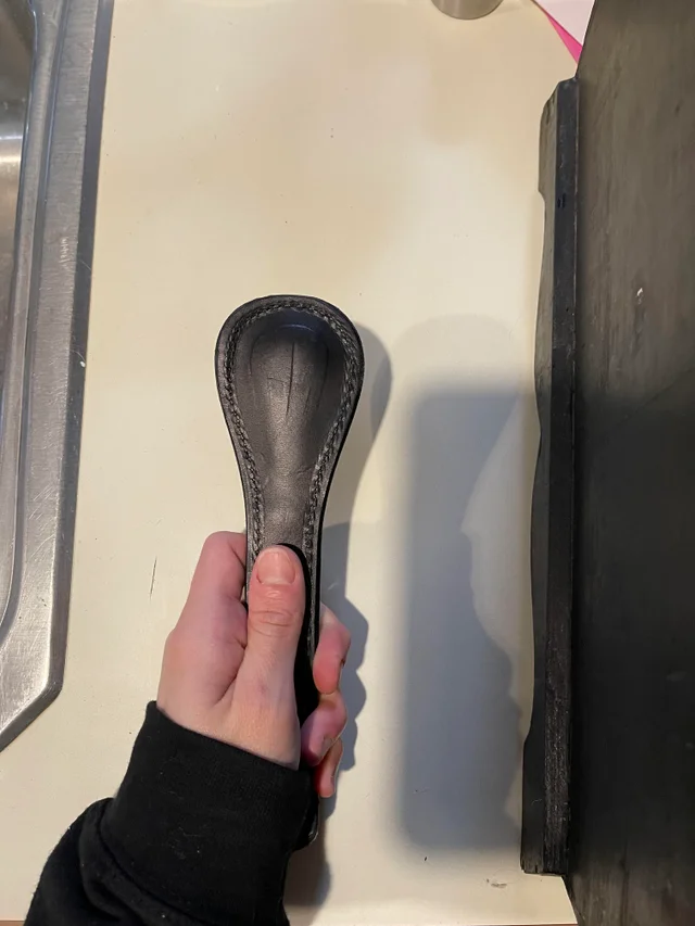 Это минидубинка, так называемый "Blackjack". Эта, судя по всему, сделана для того, чтобы служить браслетом, но при нужде надавать кому надо в жбан. Обычно она наливается свинцом для утяжеления.