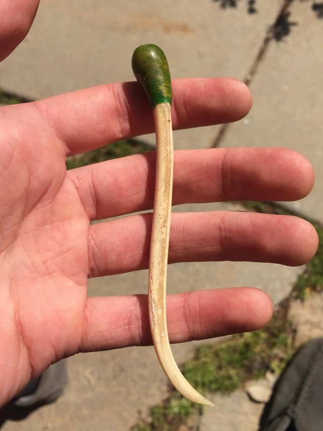 Фактически, это кость из члена енота. Индейцы использовали такие кости в качестве зубочисток. Поэтому, как видно, это зубочистка из кости члена енота.