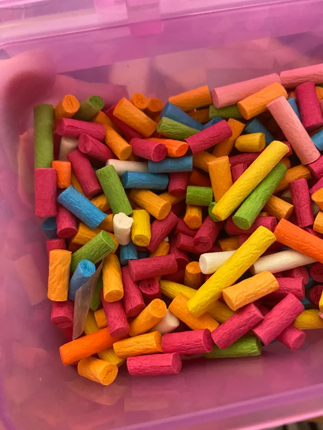 Это нарезанные бумажные палочки для детских поделок. Их потом приклеивали друг к другу или к основе для достижения какой-то формырисунка.