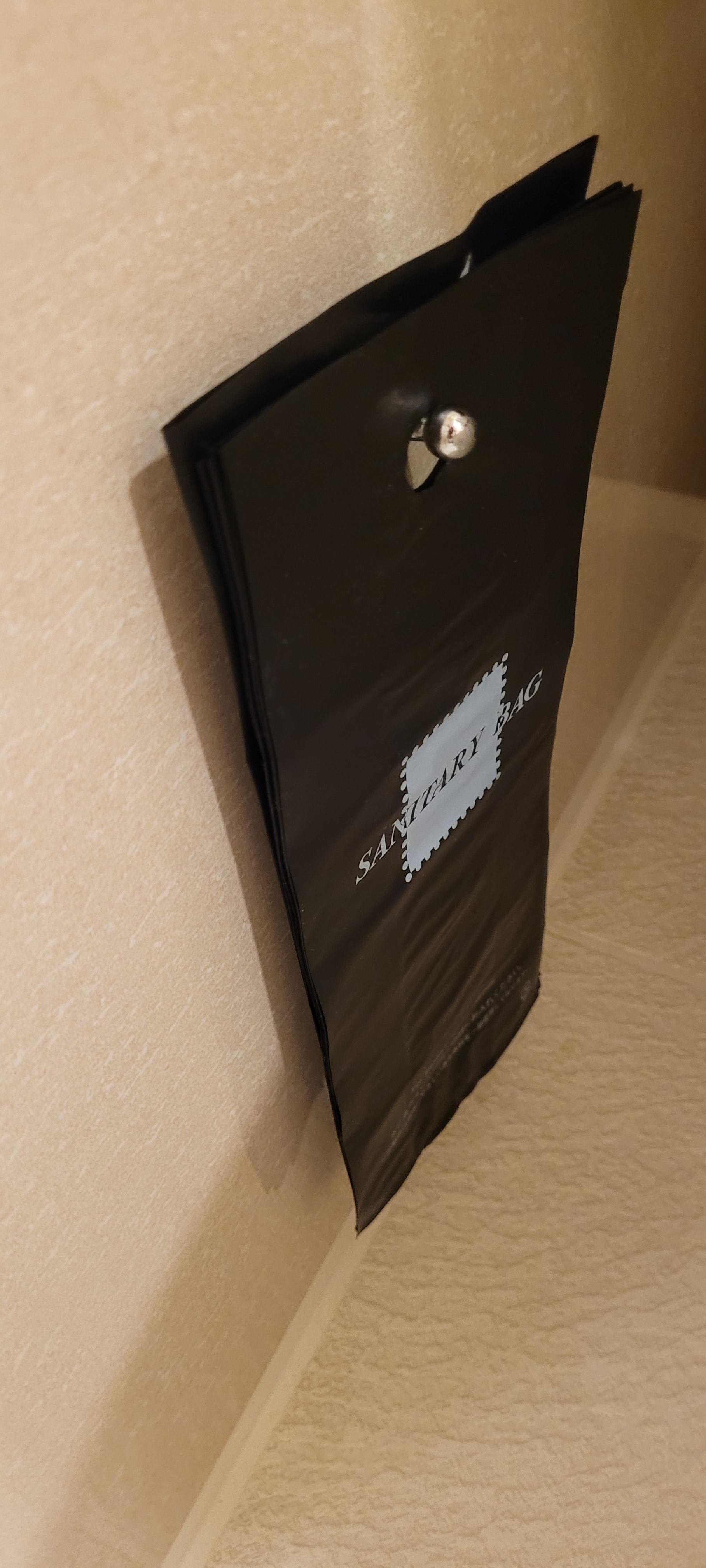 Это штырек, на котором обычно висят пакетики для использованных прокладок. Прокладка кладется в этот пакетик, сворачивается и выбрасывается в ведерко.