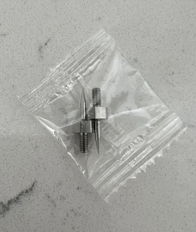 Это новые наконечники для измерителя влажности. Он измеряет удельное сопротивление, тем самым высчитывая степень просушки дерева, гипсокартона и так далее.