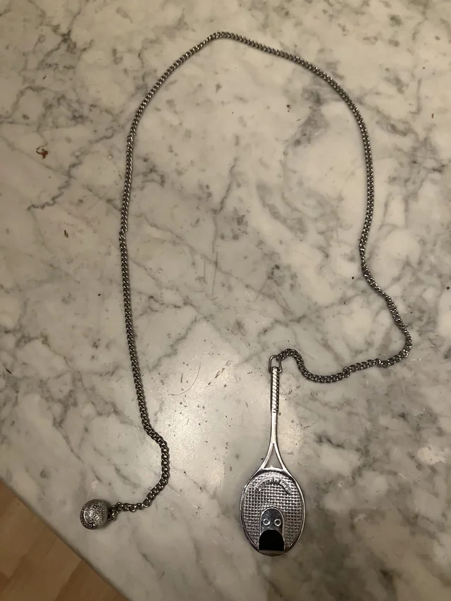 1. Теннисная ракетка с небольшим крюком, цепочкой и шариком на конце.