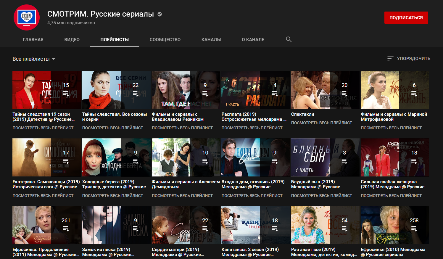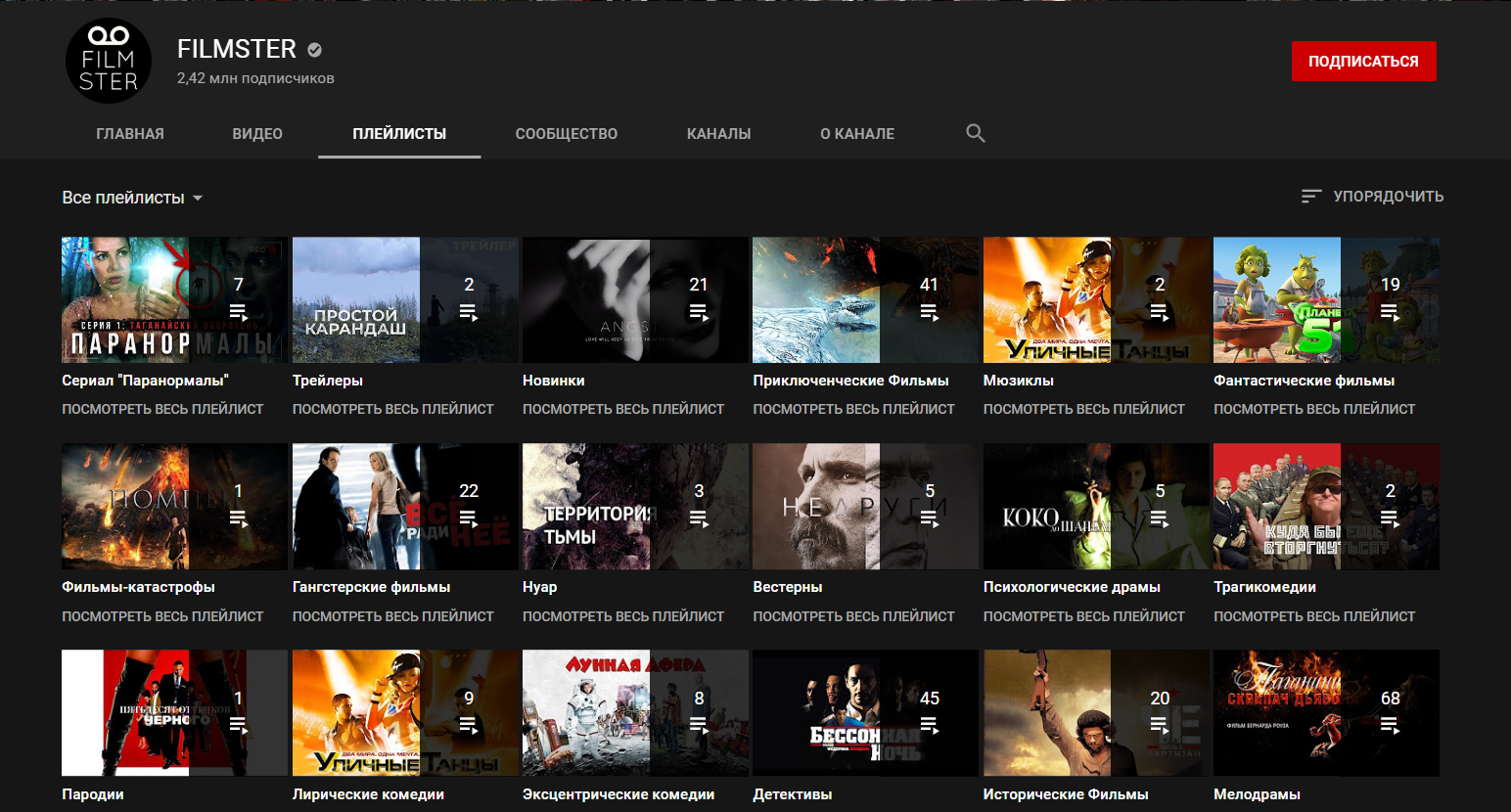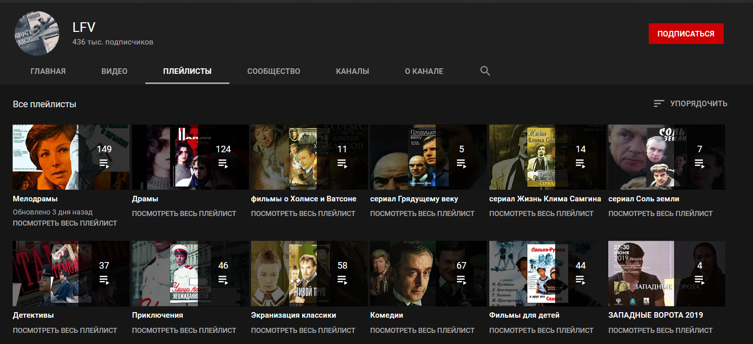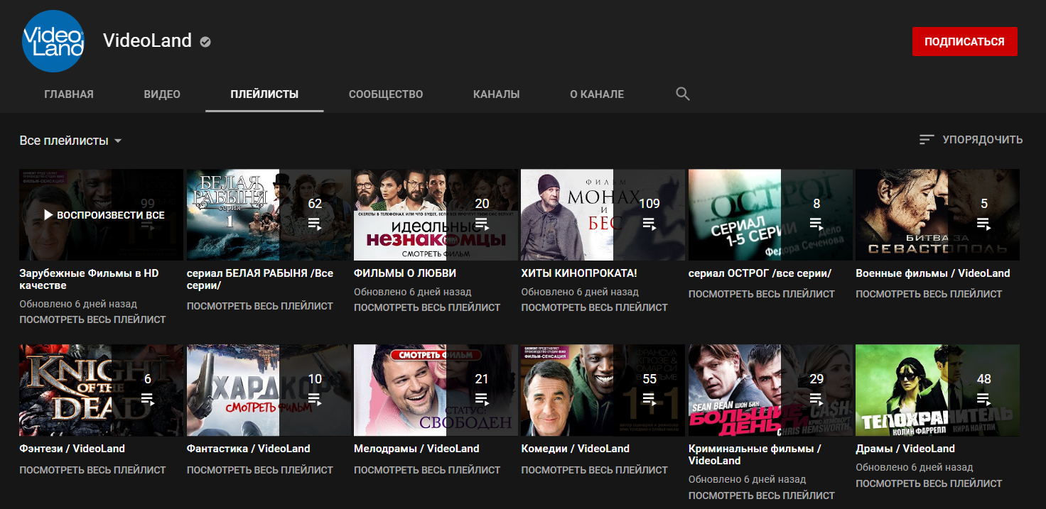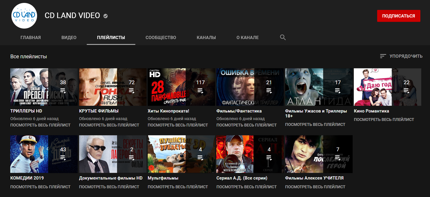 Закупают права на фильмы(«Разрушение», «Падение олимпа», «Патруль», «Области тьмы» и т.п) и заливают на YouTube. Среди зарубежных встречаются и новые отечественные.Удобное деление на жанры и года.