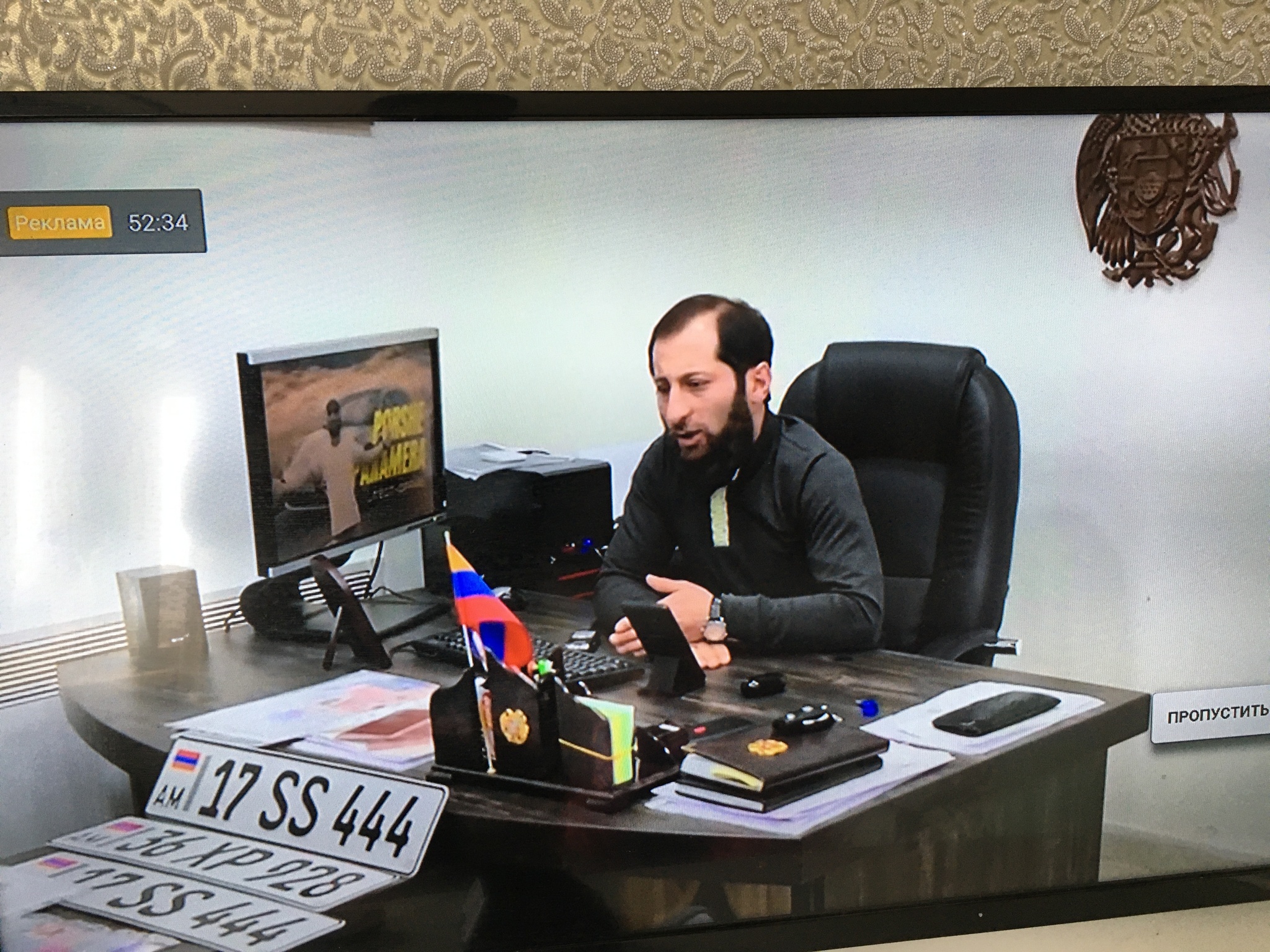 А там - мущщина втирает что-то за армянские номера и регистрацию авто.