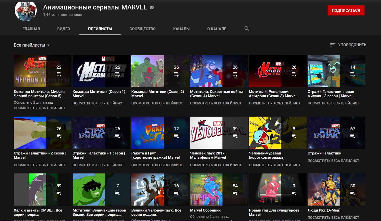 Анимационные сериал Marvel : "Команда Мстители", "Стражи Галактики", "Люди Икс" и др.