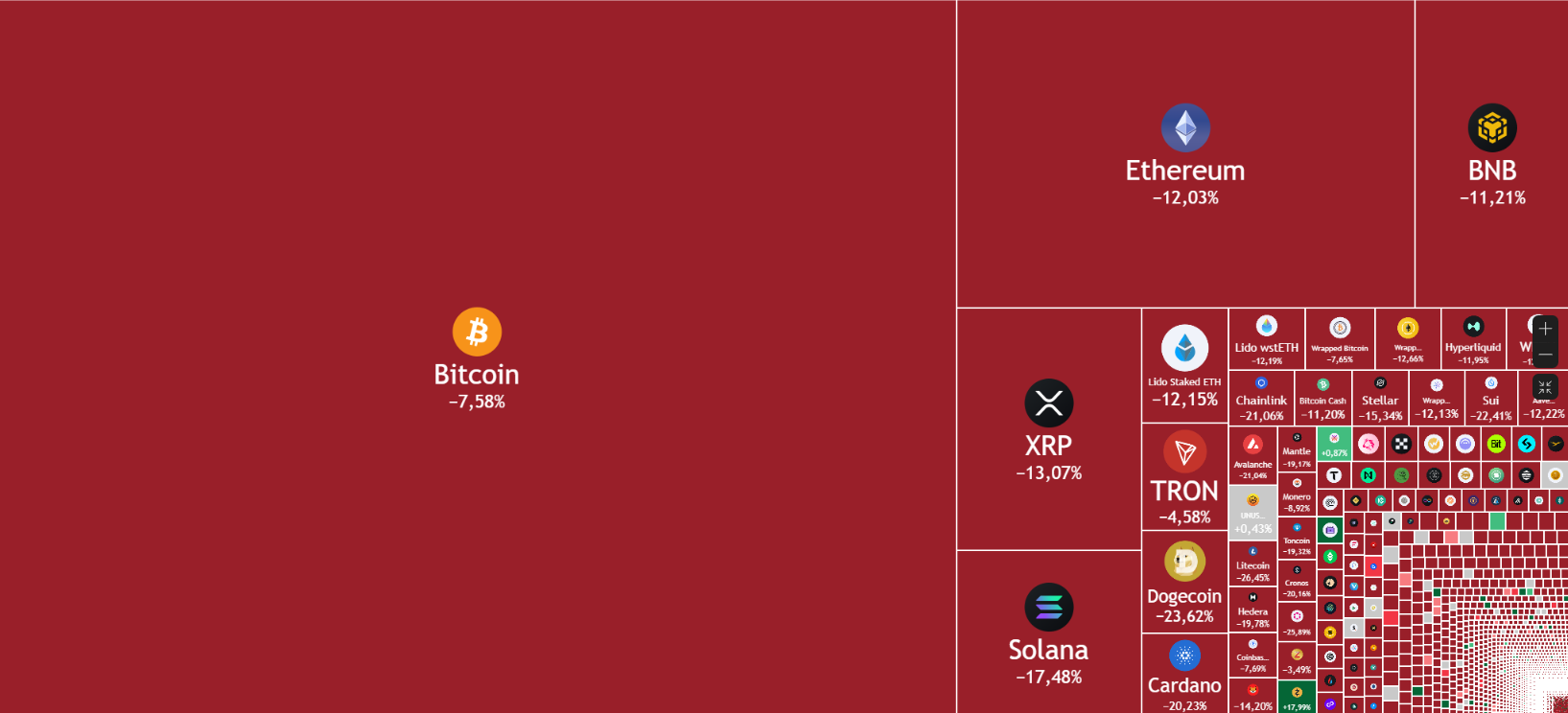 Как видите, биткойн в падении обогнал американские акции, а всего на крипторынке было ликвидировано позиций трейдеров на $19 млрд.