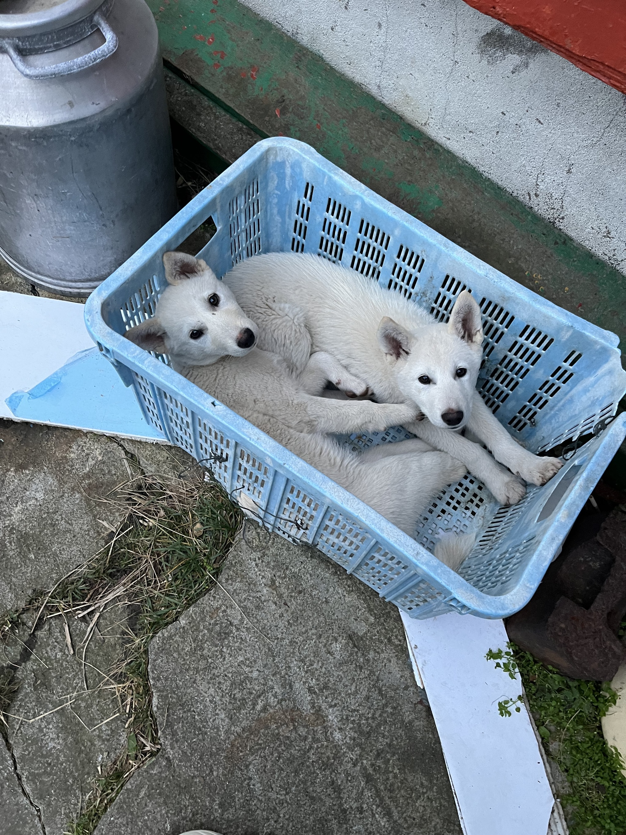 И двух щенков, Милы и Алтая. Когда мы приехали они были еще маленькими, но сейчас уже конечно подросли)