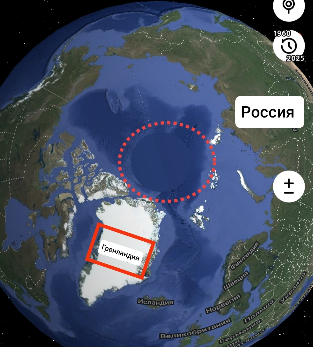 А ещё Гренландия находится в очень интересном месте, с точки зрения географии. Рядом с Северным полюсом.