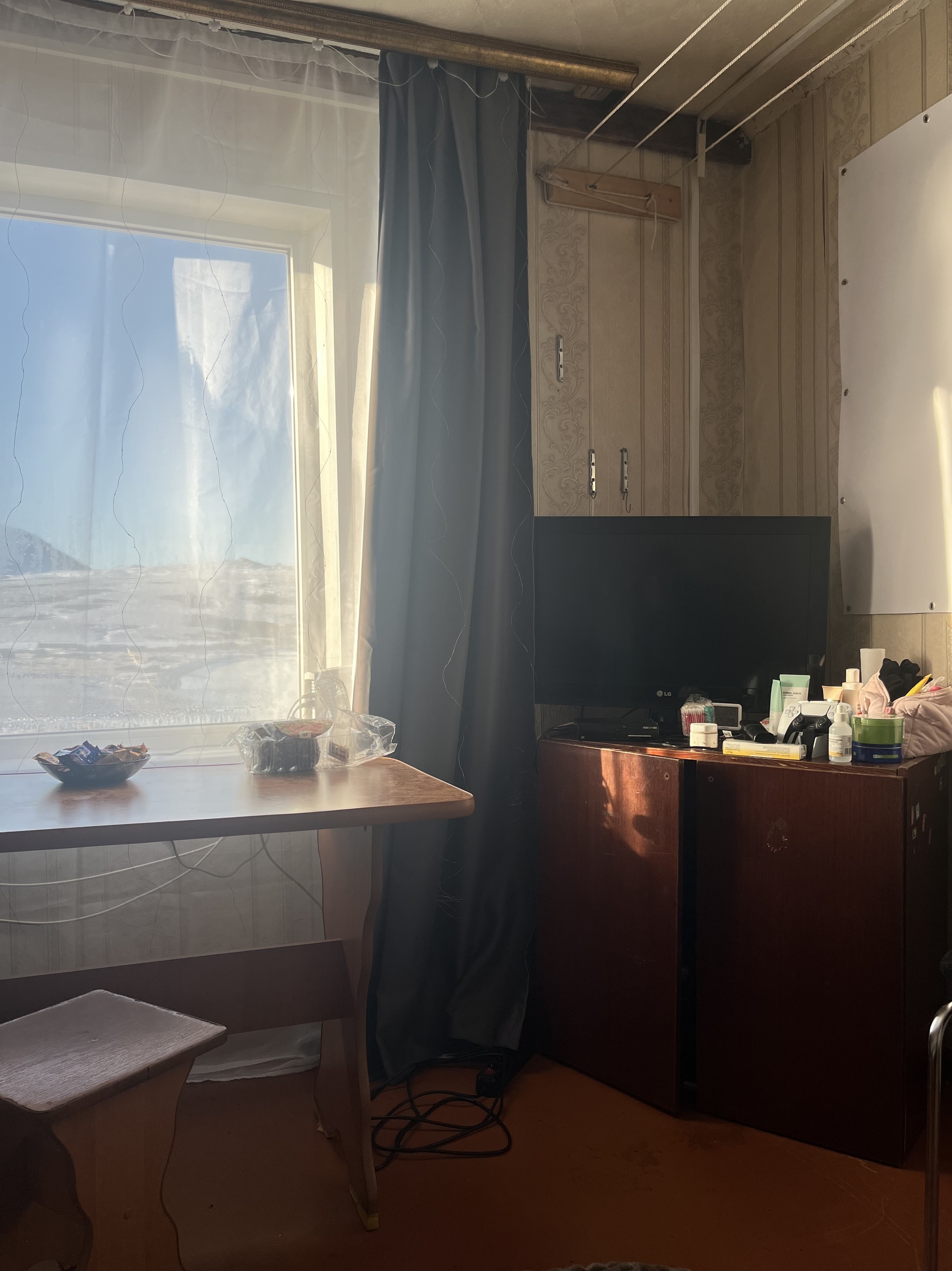После того, как нам сообщили, что третьего человека на станцию не завезут, мы переехали во вторую квартиру, ближе к дежурному помещению. В этой квартире пластиковые окна и кухонный гарнитур. Нет линолеума в жилой комнате. Но это исправимо.