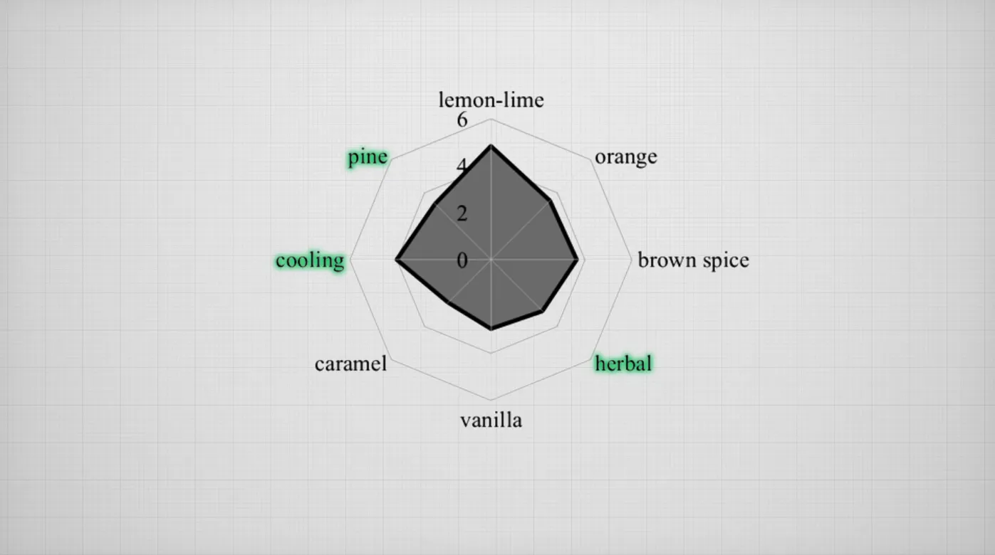 Ключевые вкусы: мускатный орех, корица и кориандр создают характерный «коловый» вкус, однако раскрываются только на цитрусовой базе из лимона и лайма.