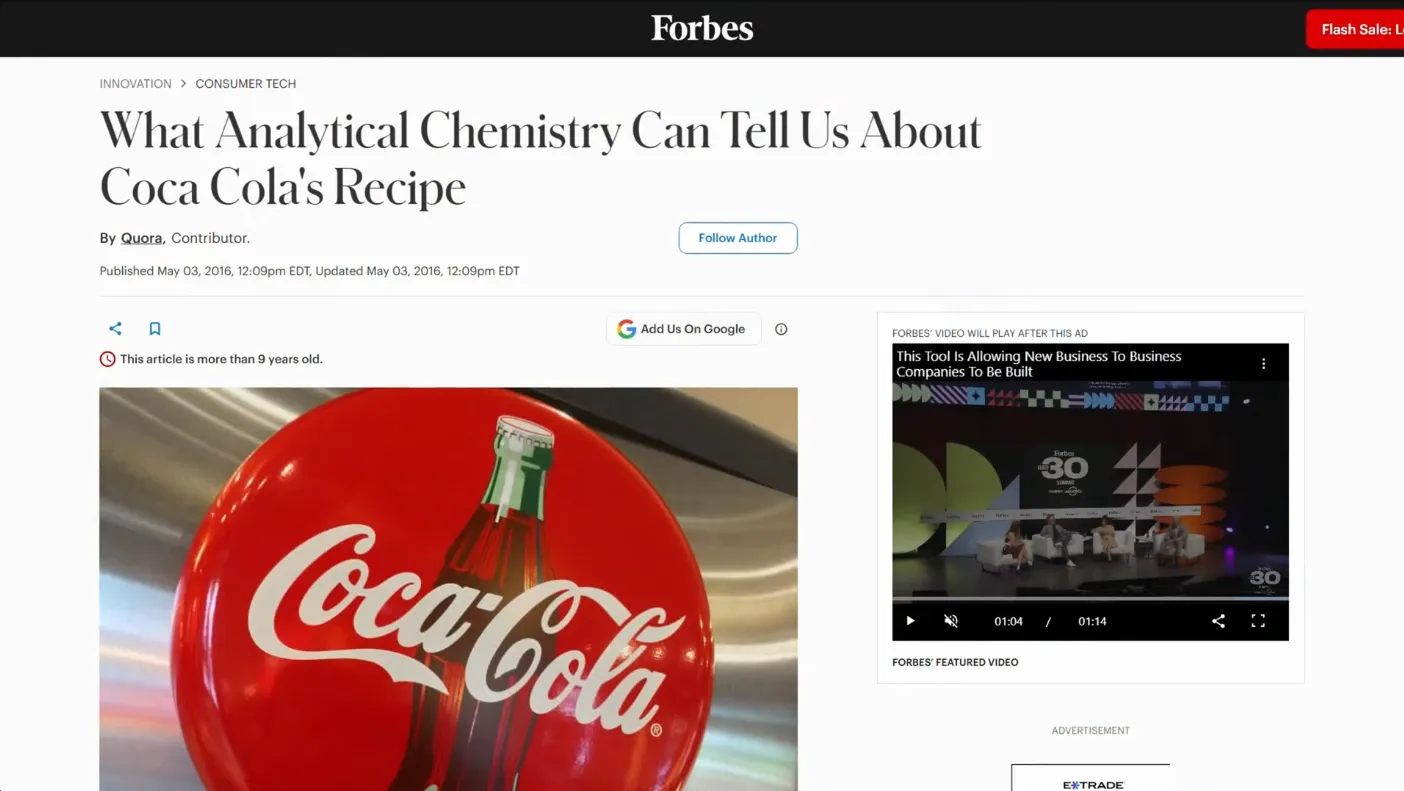Винс с канала Neptunium и Бен с канала Aspect Everything исследовали Coca-Cola, ингредиенты Зака и похожие напитки (включая Pepsi) на масс-спектрометрах.