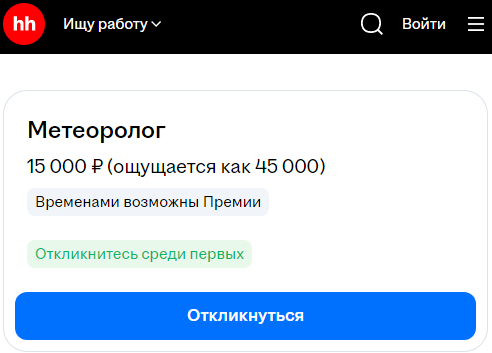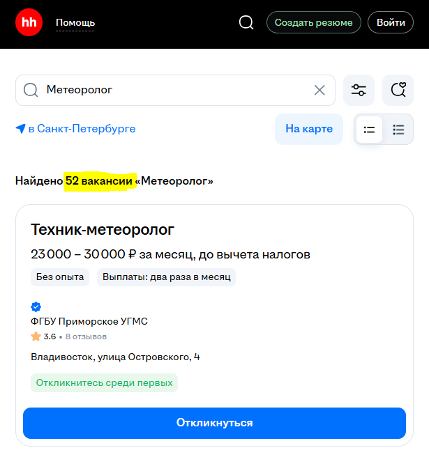 Вариант 1.Вы собрались работать на метеостанции в станице под Краснодаром, например, Метеорологом 2к (после ВУЗа), стажа нет.