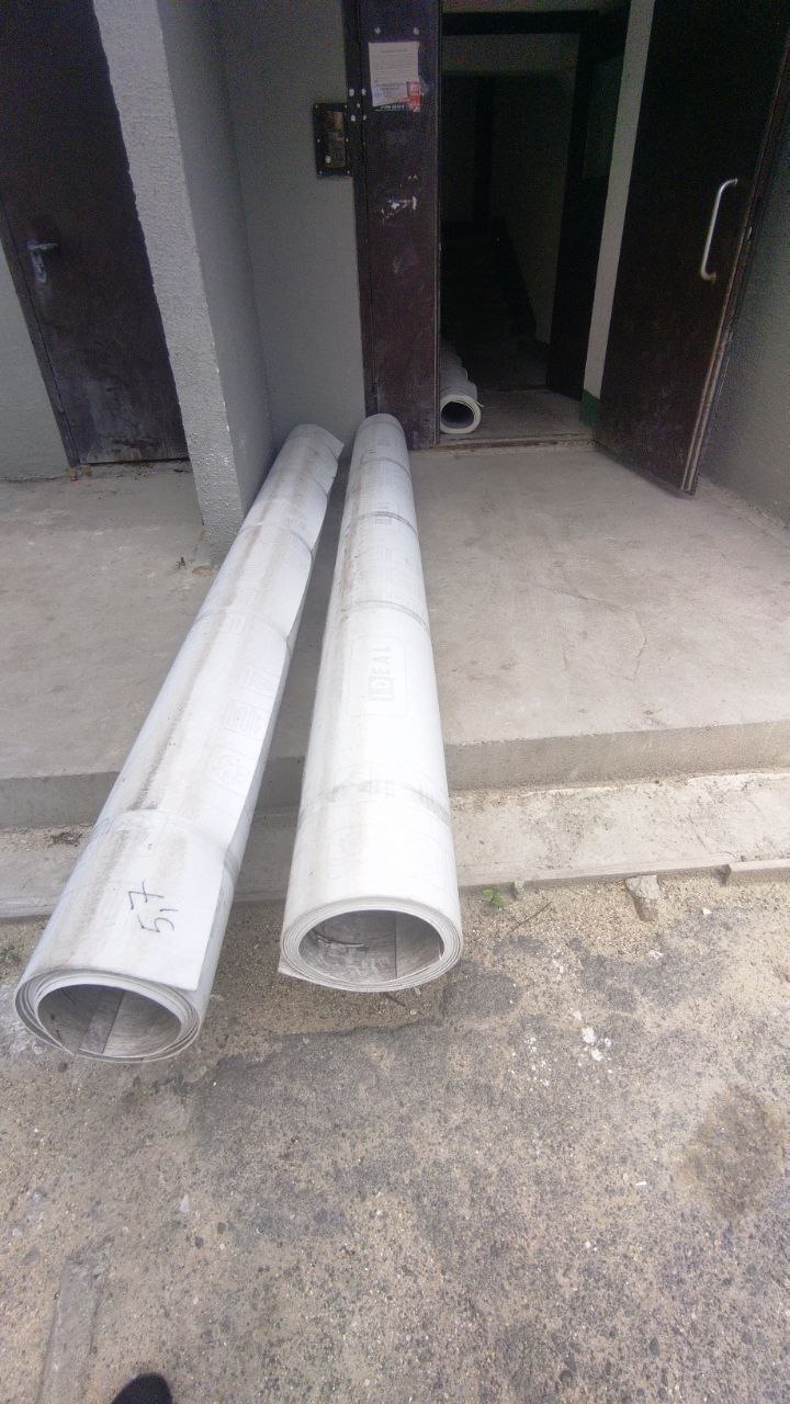 Порезали 4 куска по 5.7 и 5.5 метров. Так он и лежал в дальней комнате, ждал своей участи.