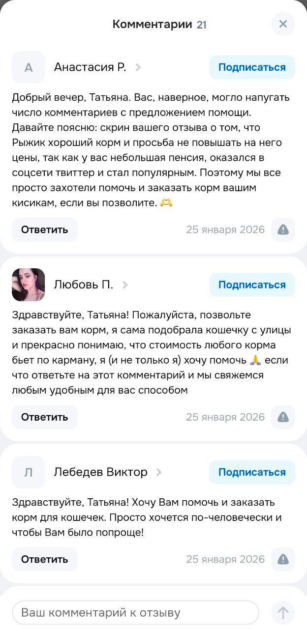 Пользователи захотели накупить ей корма, но женщина отказывалась...