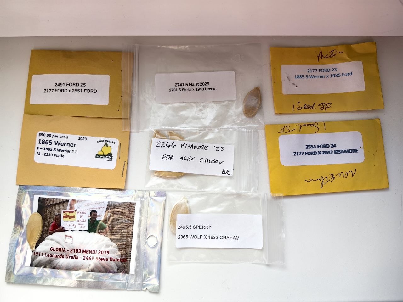 В любом случае, надо попробовать вырастить семечко 2183 Mendi. Тыква будет называться просто Менди. Эту тыкву я уже выращивал два раза — в 2022 году и 2024 году. В первый раз у меня была тыква на 531 кг, а во второй раз — 817 кг. Вообще, этих семян уже очень мало, буквально последние во всём мире. Это и не удивительно, ведь сама тыква — 2019 года. Сам же Рубен Менди не один раз помогал с доставкой семян до меня, в том числе он помог с 2365 Wolf в прошлом году. Так что, думаю, с этой тыквой есть определённая эмоциональная связь. Но семечко довольно старое, есть вероятность, что оно может не взойти, поэтому в любом случае будет запасная тыква из семечка 1865 Werner. Но я надеюсь, что всё получится.