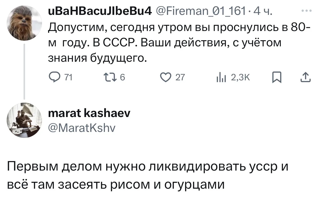 Допустим, я заявил, что теперь стал главным борцом с курением, что курение отравляет благодатный воздух нашей Руси-матушки и я этого терпеть не стану никогда. Любого курящего буду карать жестко и бескомпромиссно. С этого момента если я вижу на улице курящую женщину или старика, я тут же подбегаю, бью их с вертухи в щщи и заставляю сожрать сигарету. А кореш меня еще и снимает на видео. Потом мы выкладываем это в наш замедленный Телеграмчик и хвалимся, как мы воздух защищаем во славу традиционных ценностей. А тут я иду и вижу, что курит пара здоровых мужиков. Прям основательно так курит. Плотно. Еще и дымовые колечки издевательски выпускают в мой воздух русский! Я, естественно, прохожу мимо, глаза в пол. А они мне еще орут: "Эээ, петух, это ж ты там борец с курением? Борись давай! Куда пошел, сюда иди, на!" Я ускоряю шаг. Я ж не петух, я антикуриный воен! На всякий случай перехожу на бег, забегаю за угол, прячусь в кустах. А кто-то увидел это и пишет мне: "А чего ж ты им по роже-то не дал, борец с курением?! Чего сигареты сожрать не заставил? Где твоя борьба?" А я им: "Ах ты провокатор поганый! Я один, а их двое! Что я должен был сделать? А если бы они мне втащили, то что? И вообще, если нихера не знаешь, то курили они за Русь-матушку, во славу чистой атмосферы! Это, вообще-то, мои друзья близкие. А в кустах сидел потому что жара на улице просто. Солнце скрылось и я сразу вышел."