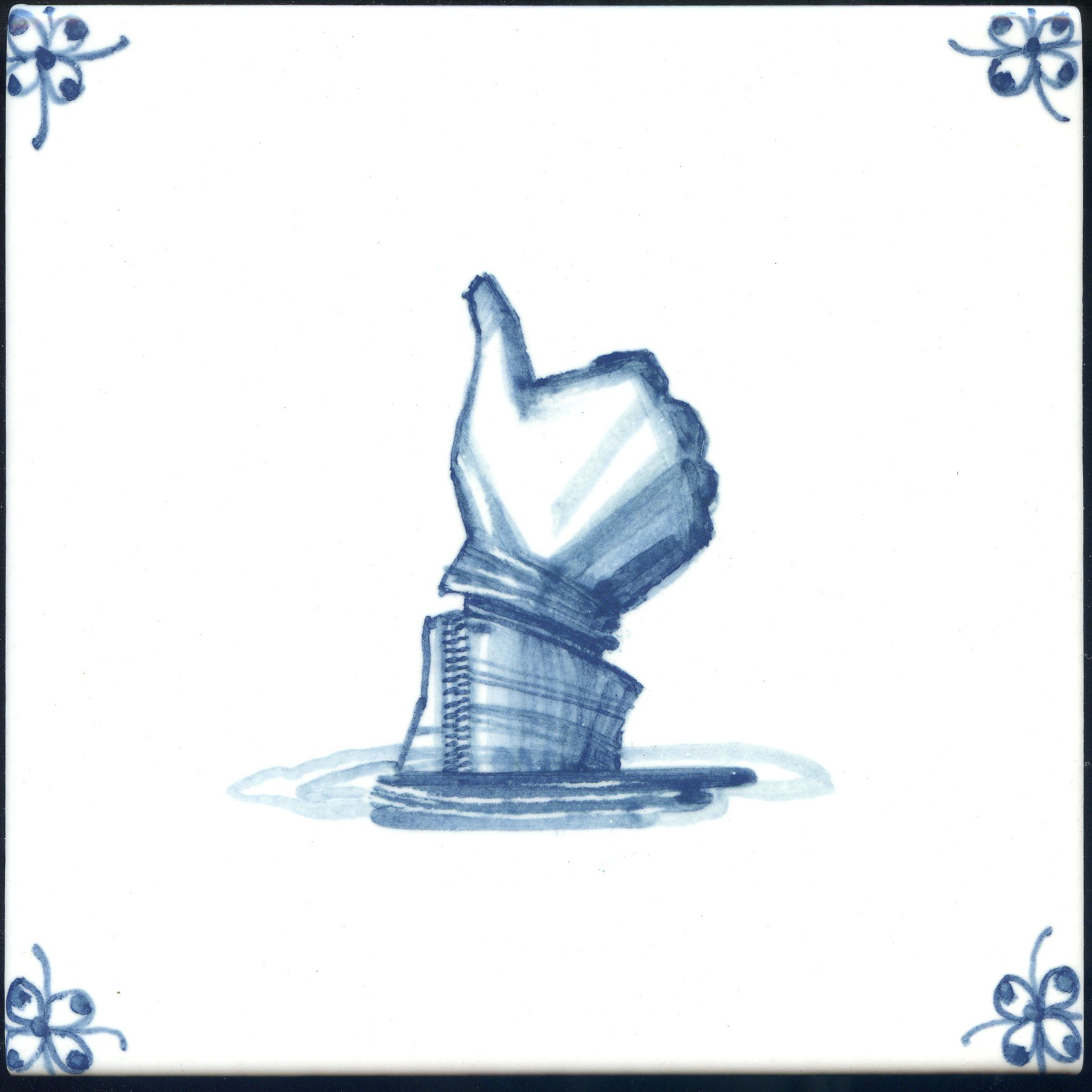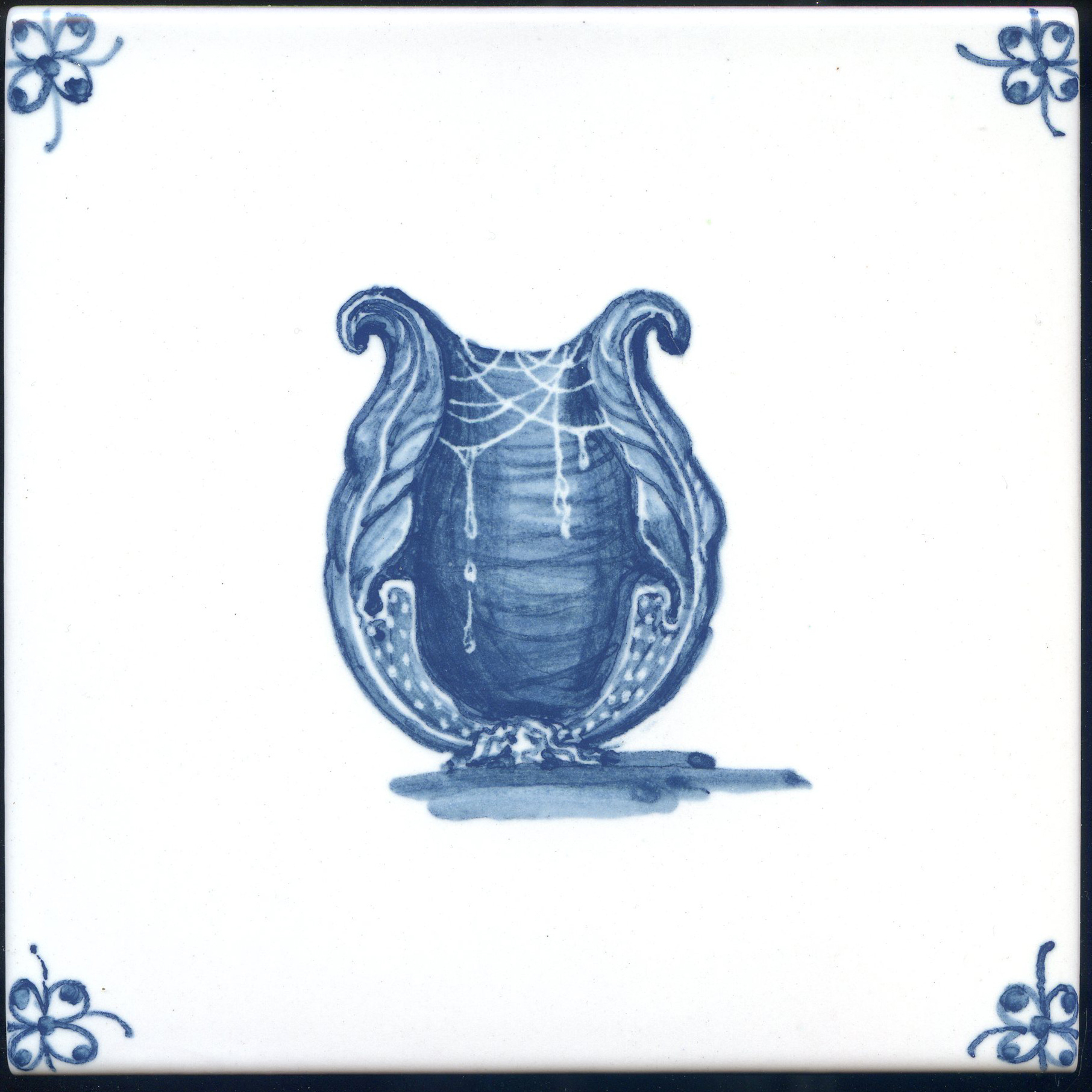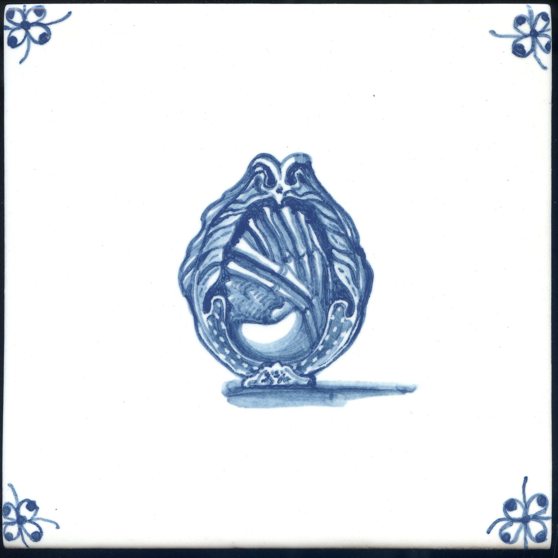 Что это? У голландцев был целый жанр росписи, который мы называем "малые формы", в рамках которого на плитке изображались предметы быта. Зеркальце, картинка в рамке, стул, сапоги, ложка — все, что угодно. Главное, чтобы под предметом была падающая тень.
