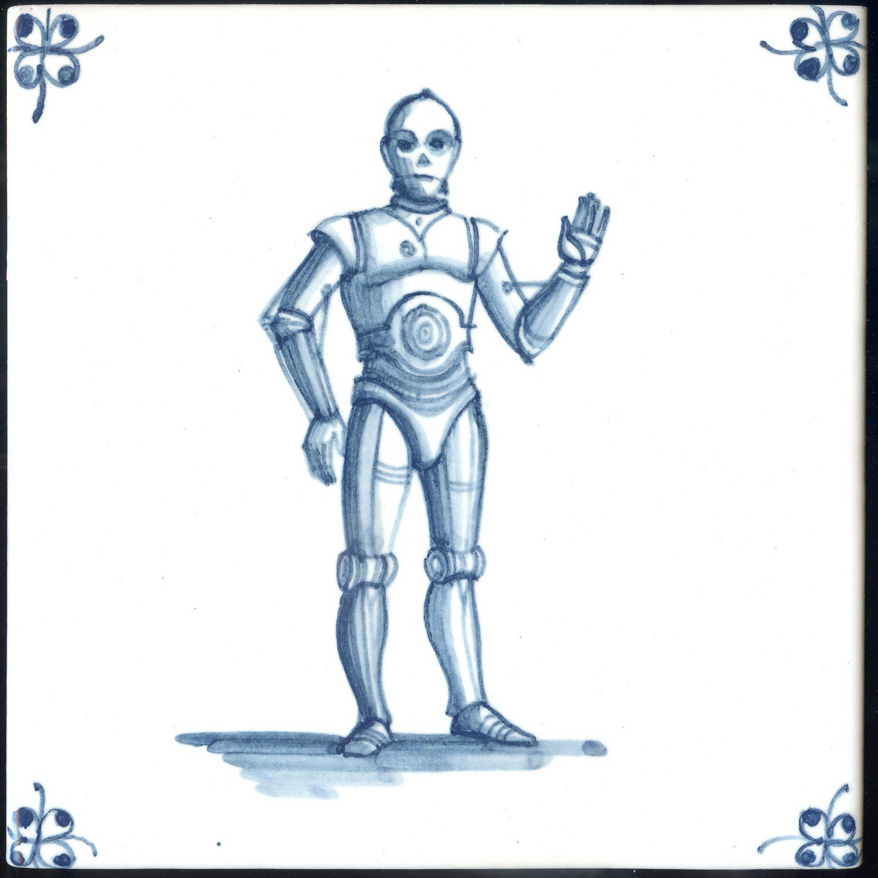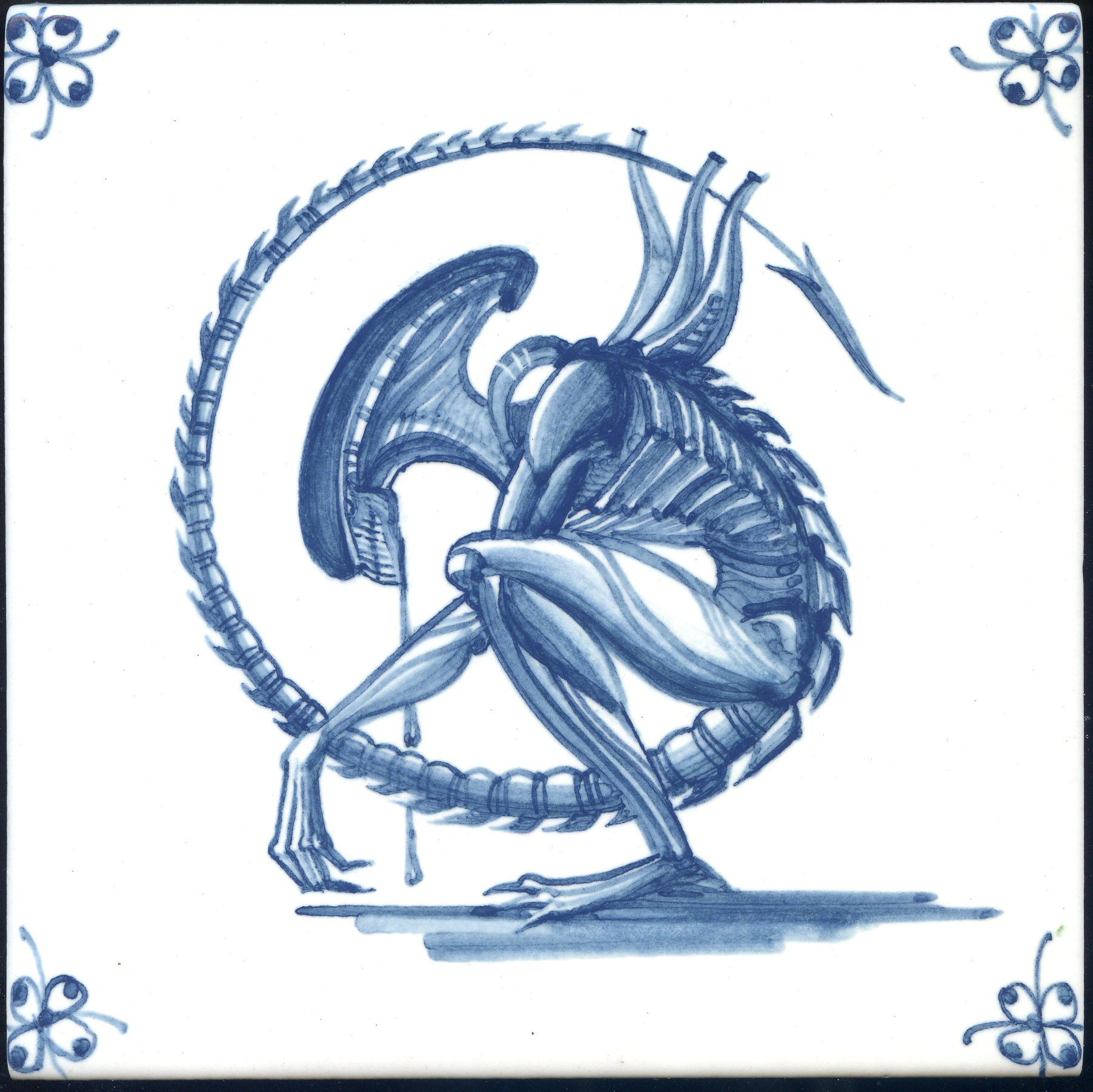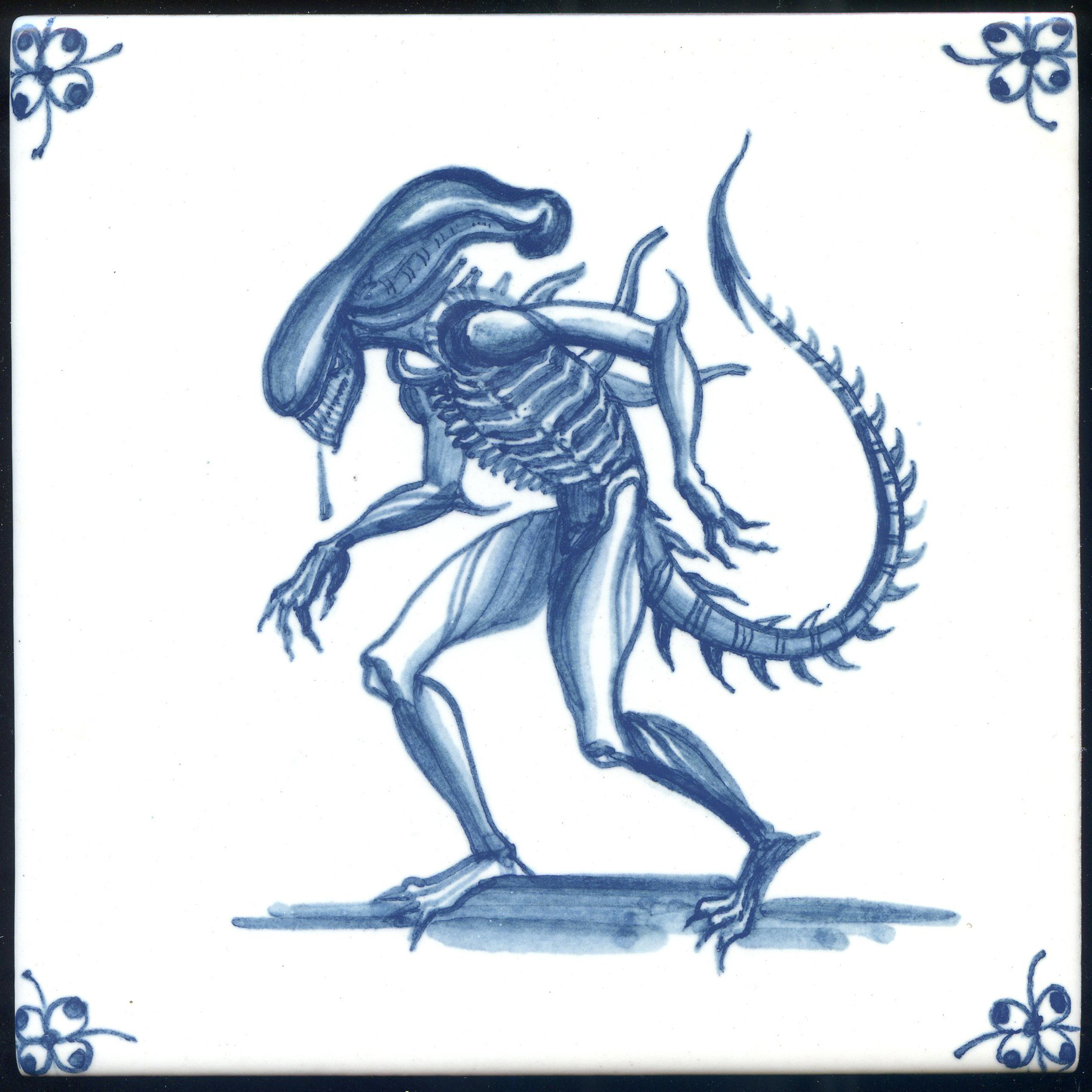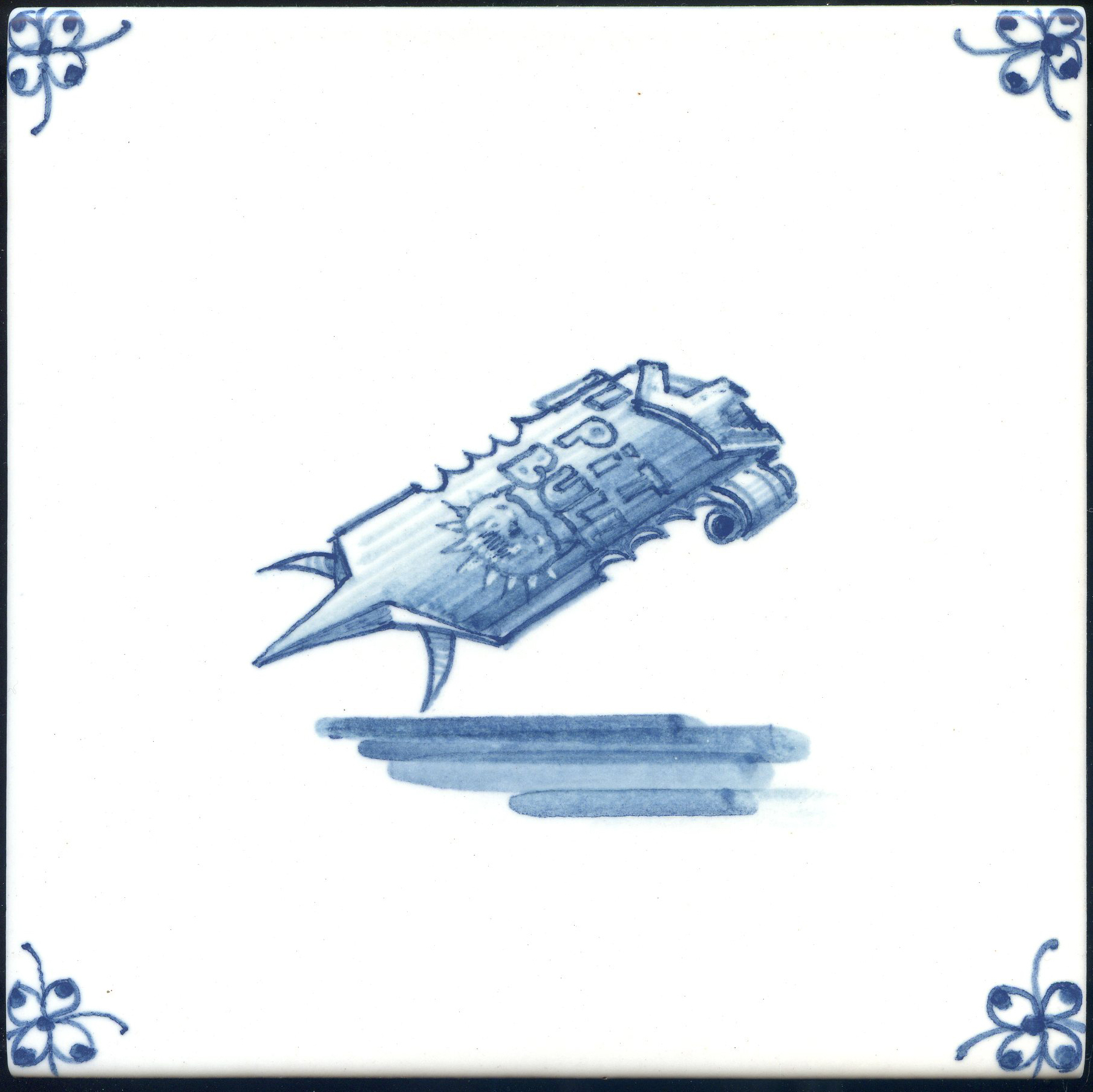 Что это? У голландцев был целый жанр росписи, который мы называем "малые формы", в рамках которого на плитке изображались предметы быта. Зеркальце, картинка в рамке, стул, сапоги, ложка — все, что угодно. Главное, чтобы под предметом была падающая тень.