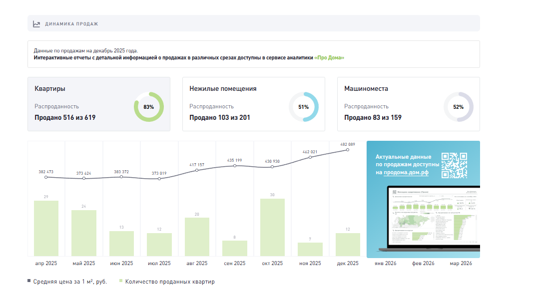 Видите? Данные по продажам только по декабрь 2025 года. Сейчас апрель 2026-го. Хотите видеть январь, февраль, март? Пожалуйста, подписка на сервис аналитики "Про Дома" - от 42 тысяч рублей в месяц. Полмиллиона в год за то, чтобы видеть актуальные данные. Нормально так, да?