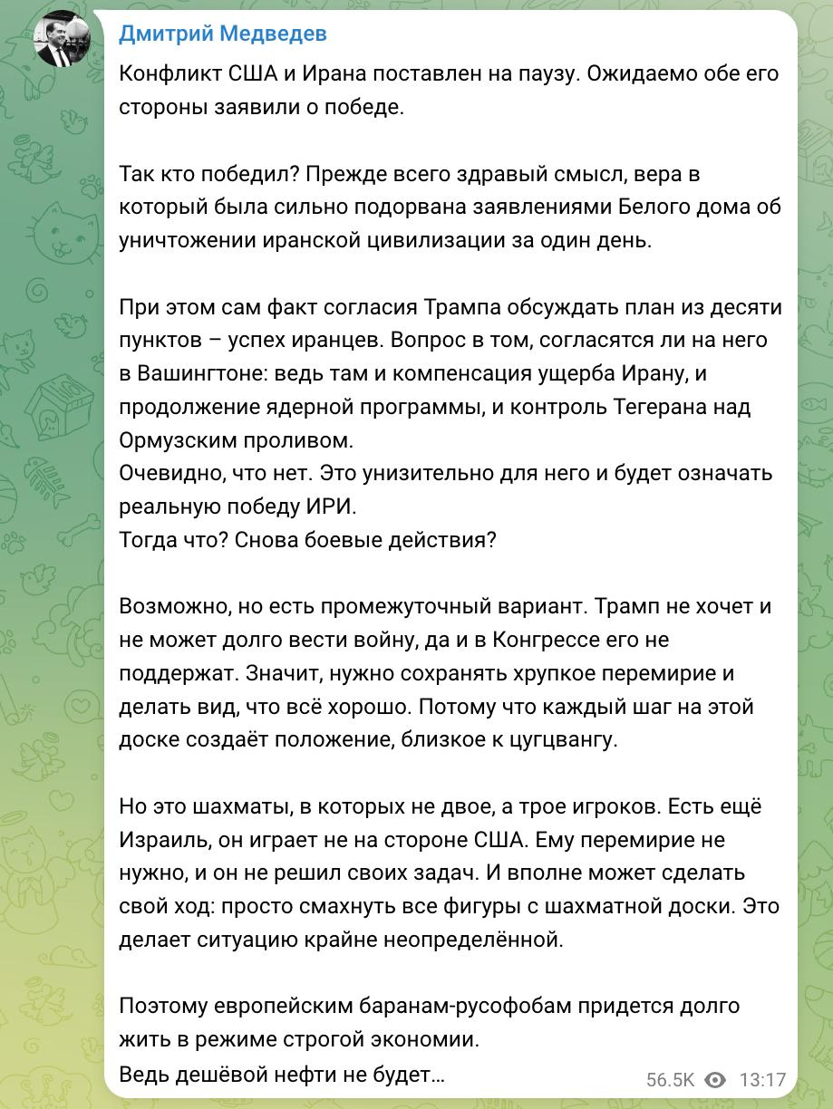 То есть Медведев предполагает, что Трамп просто попробует всё затянуть, чтобы и не победить, но и не проиграть.