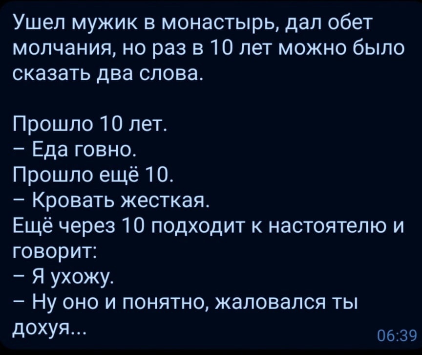 Мужик поворачивается, в упор смотрит на супругу, и раздельно так произносит: