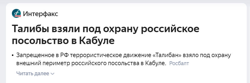 Читаю все эти новости про Афганистан, про падение светского государства, установление диктатуры ислама, приход религиозных фанатиков к власти. Казалось бы, ну и пусть. Пускай у себя, на своей земле строят любой строй, какой хотят. Капитализм, социализм, шариат. Вообще пофиг. Закрываются там, живут и процветают. Но увы, им надо всем донести свои ценности. Любым путем. И тут приходит мне в голову сравнить их с евреями, кои около 1500 лет были народом без страны. И когда выделили кусок им, что сделали? Правильно, потянулись все дружно туда, со всех концов. У них тоже есть государственная религия - иудаизм. Вся страна её придерживается. При этом так жестоко и рьяно ни один еврей её никому не навязывает.