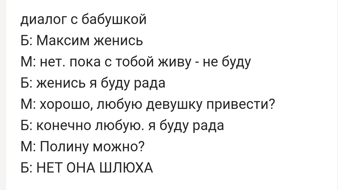 И как вы думаете, что сделала бабушка? Правильно, стала орать, что мы все твари неблагодарные, стала собирать вещи и уходить. Я хотела её остановить, но муж подошёл и спросил: а оно тебе надо?