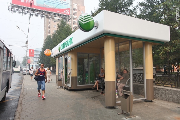 Вот такой чудо киоск от сбера. Подхожу, а там тучная мадам с десятком пакетов внутри ковыряется в банкомате. Жду. Вроде доделала свои важные дела в банкомате. Выходит.