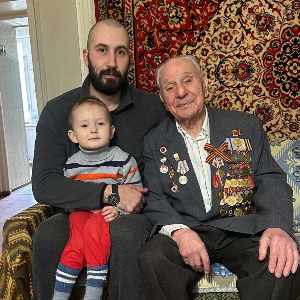 Год прошёл, все выросли. Деду 97, сыну 3. Всех с праздником Великой Победы!