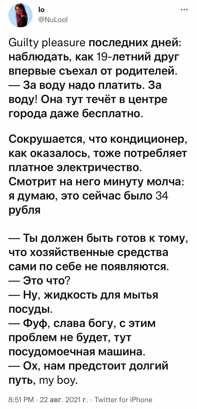 Приучаю сына-шестилетку к самостоятельности. Началось с простого - помыть за собой кружку. Пару дней мыл, всё получалось. На третий день ставит кружку в раковину и уходит. Спрашиваю: