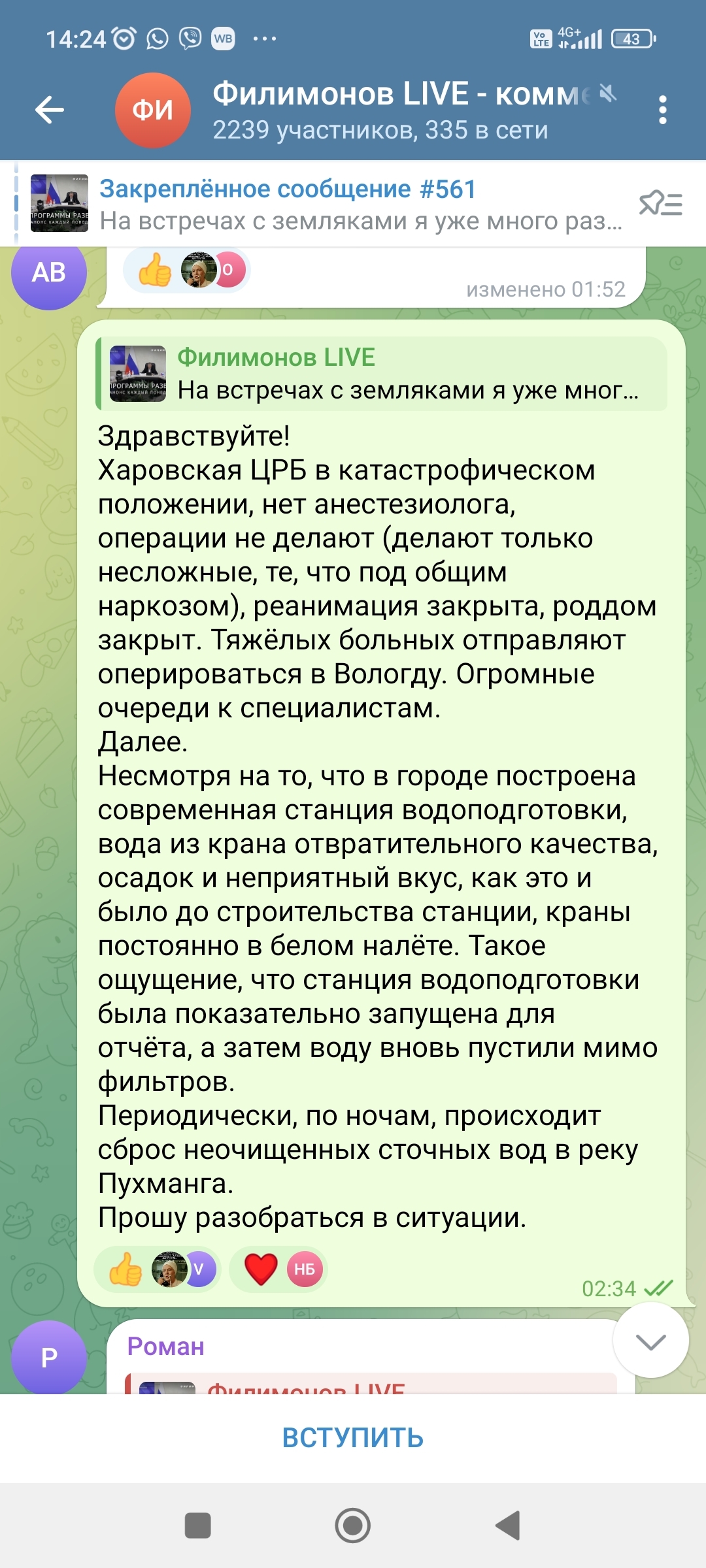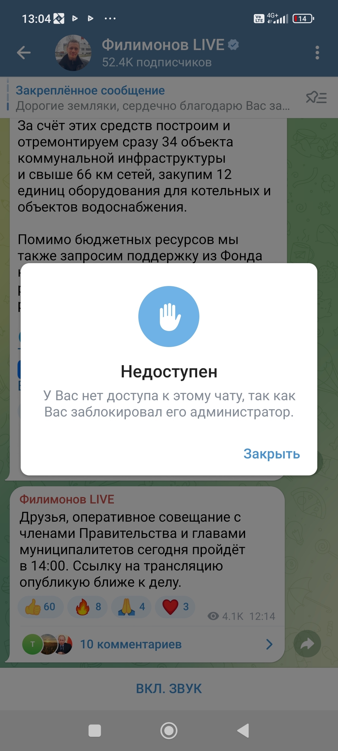 После этого наступило молчание... А, чуть позже, я обнаружил, что заблокирован на официальном ресурсе ВРИО губернатора