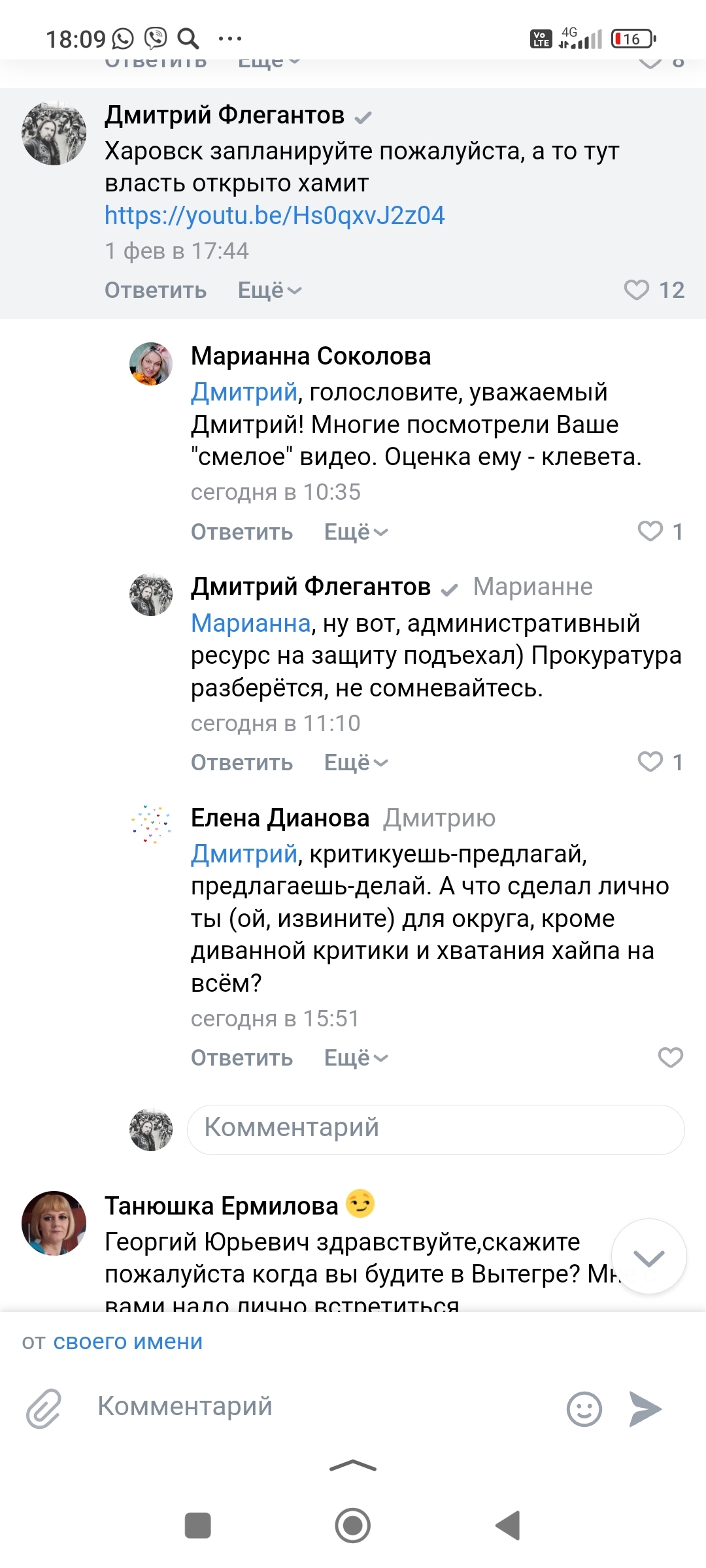 Недавно, на официальной странице нашего ВРИО губернатора, я разместил вот такой комментарий: