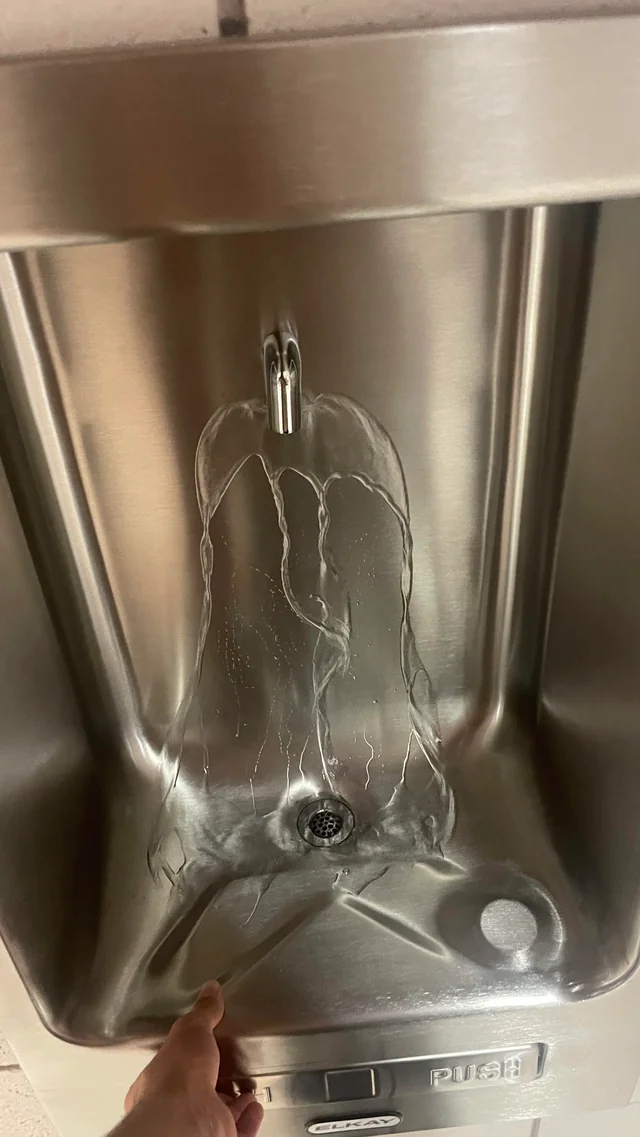 4. Увидел в университетской качалке. Не фонтанчик, не писсуар, но вода идет на заднюю стенку, не вперед.