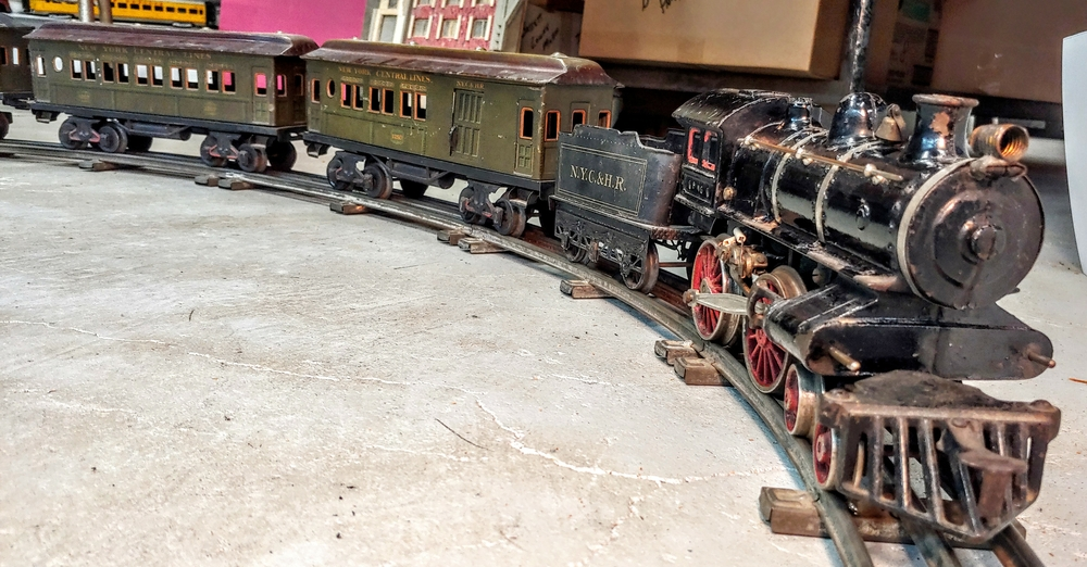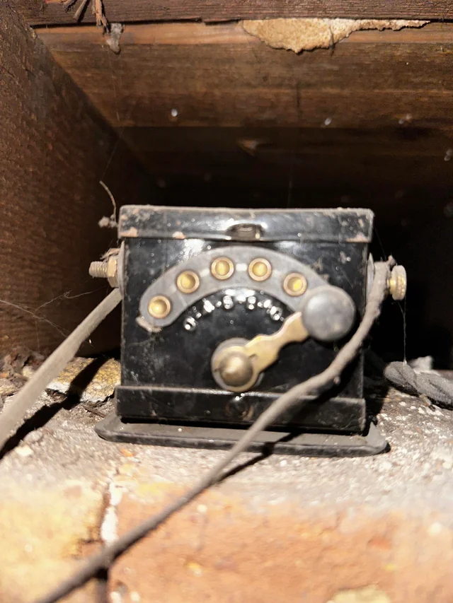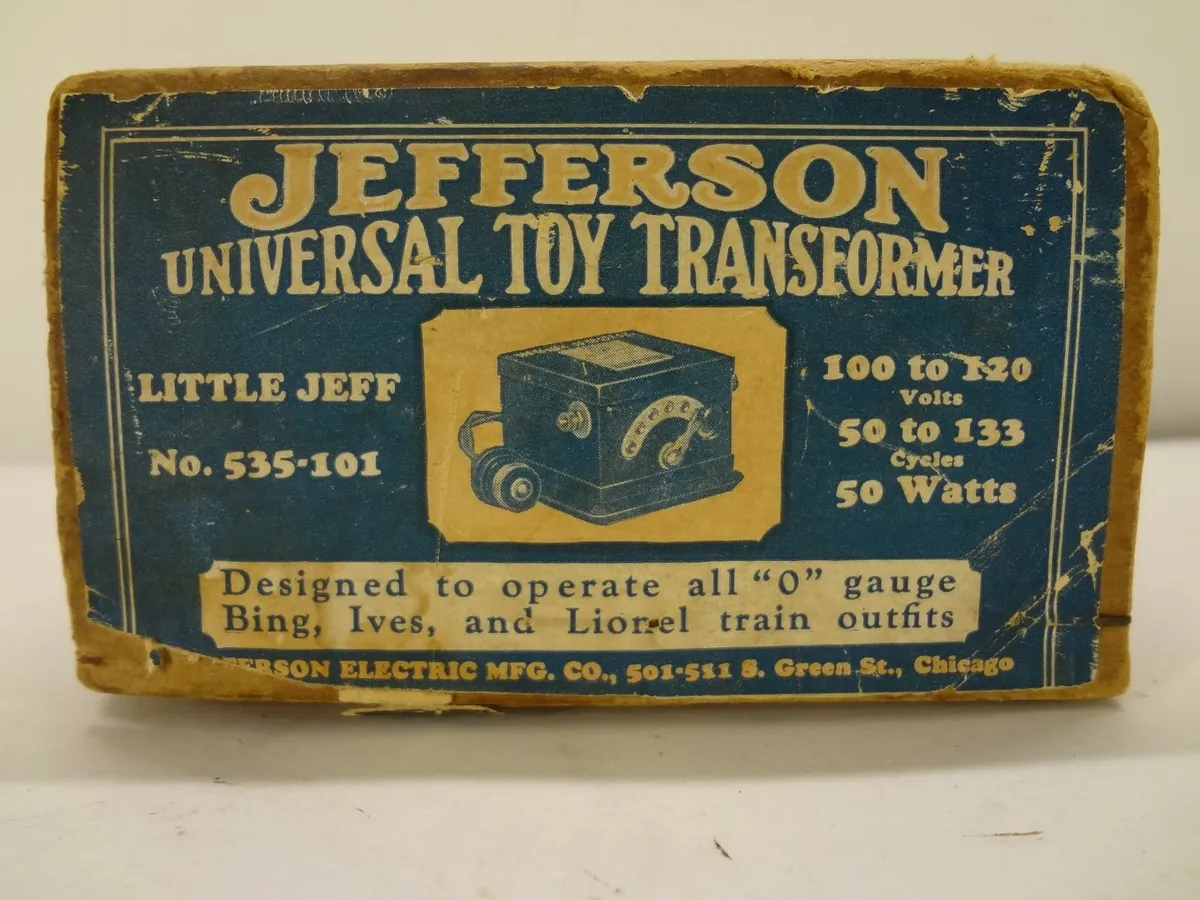 Это небольшой трансформатор 1920-х годов. Little Jeff toy transformer, вырабатывает 6 вторичных напряжений от 5,5 до 13 вольт с шагом в 1,5 вольта. Судя по описанию, он был нужен для запуска миниатюрных паровозиков.