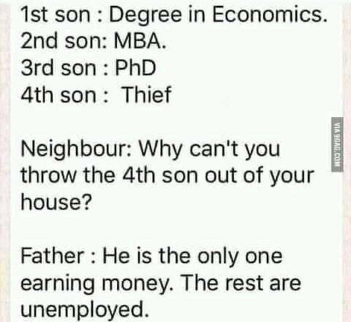 1-й сын: Степень по экономике